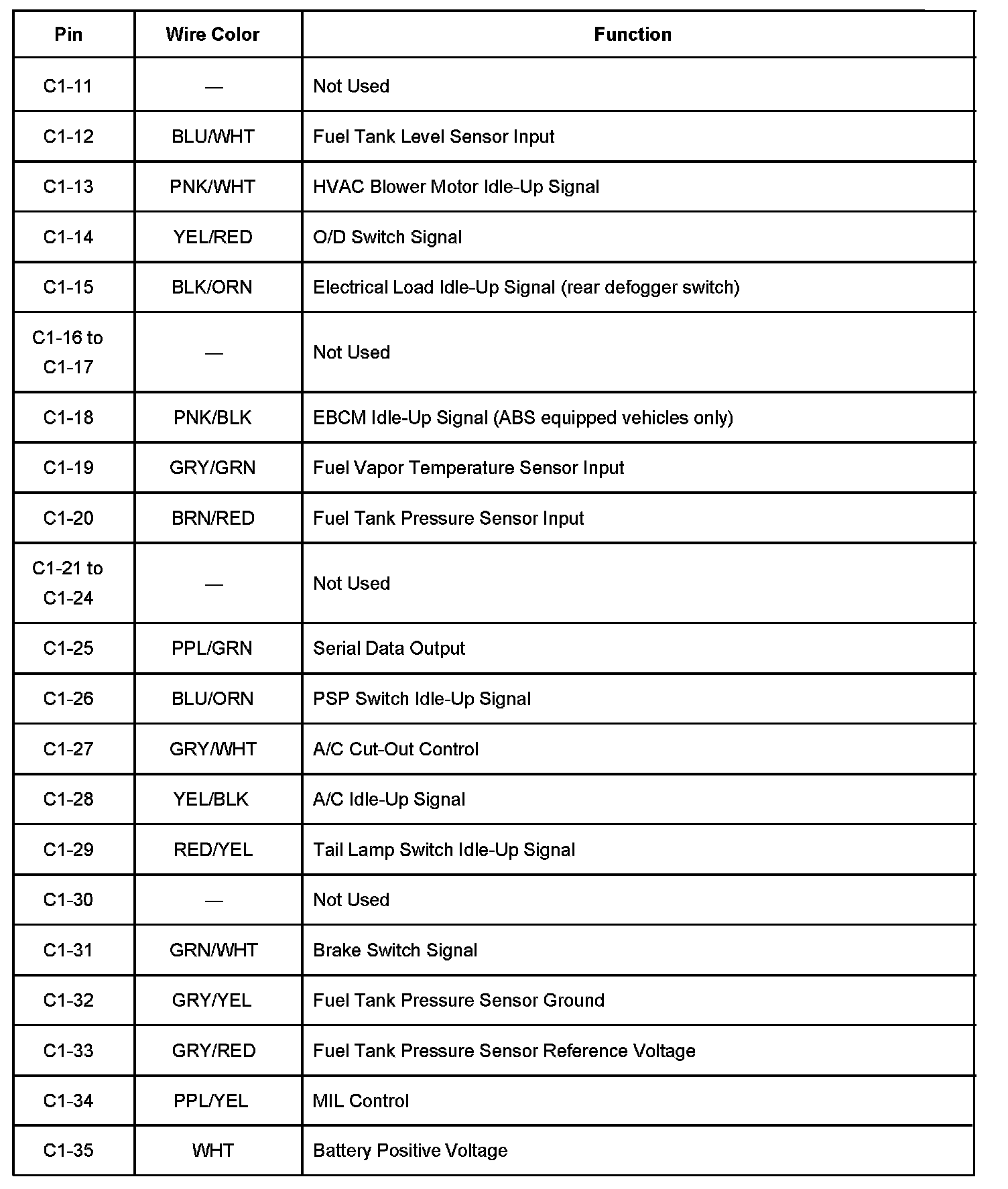 Back View Of The PCM Connector C1 Part 2: