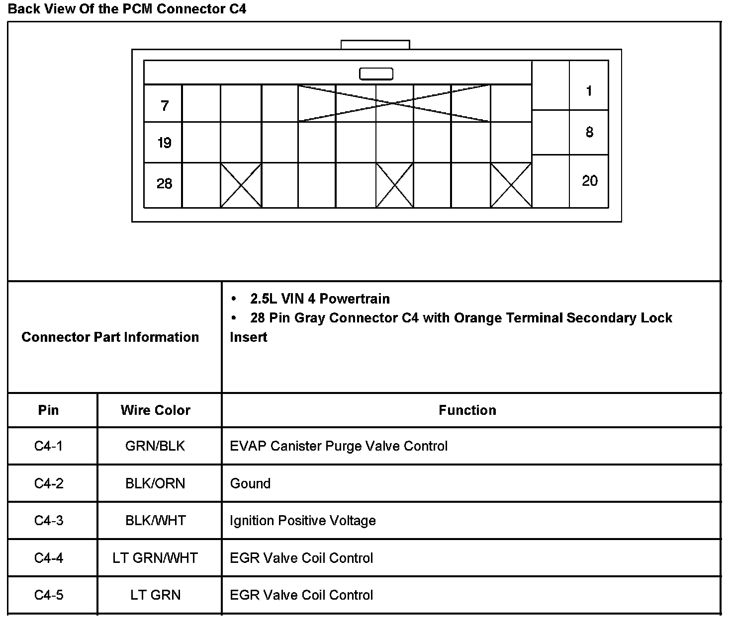 Back View Of The PCM Connector C4 Part 2: