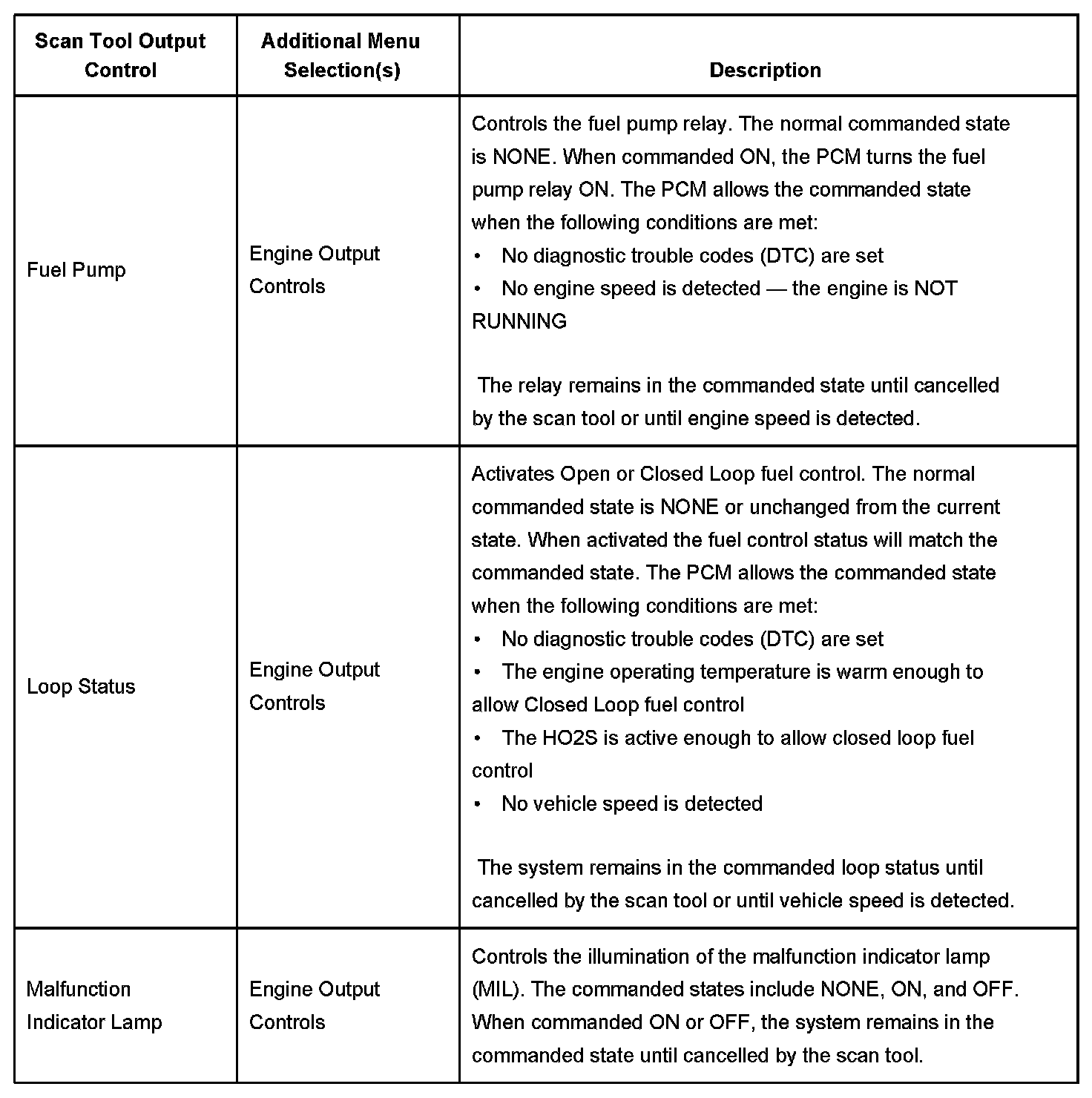 Scan Tool Output Controls