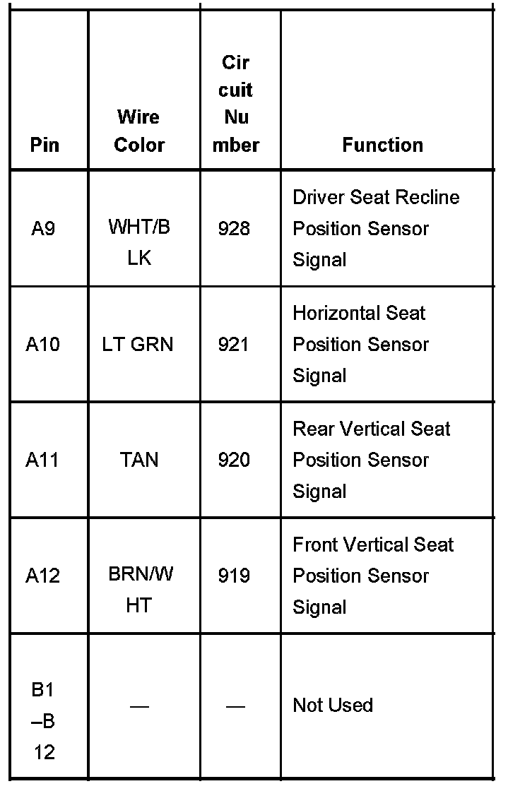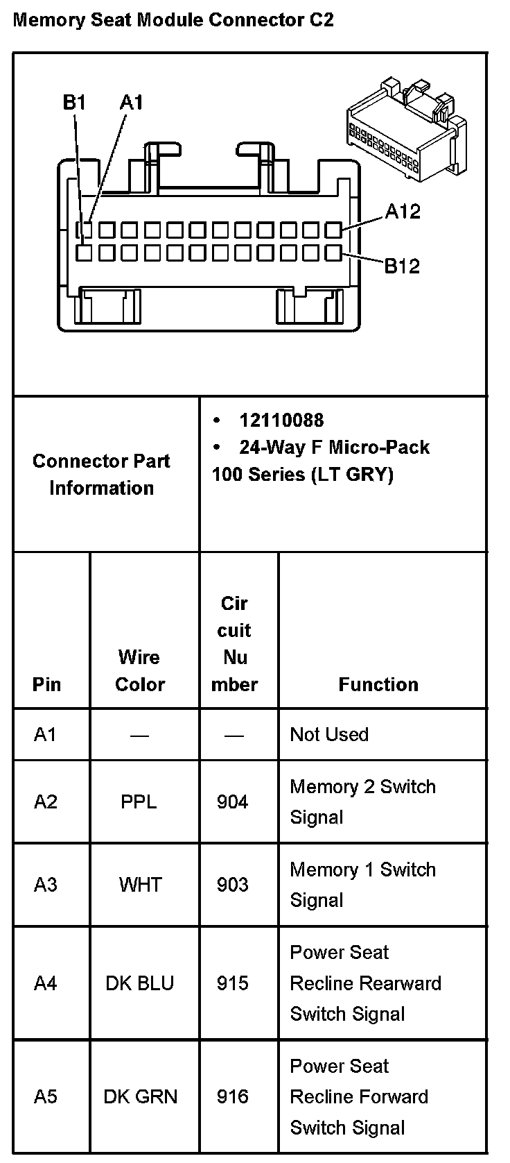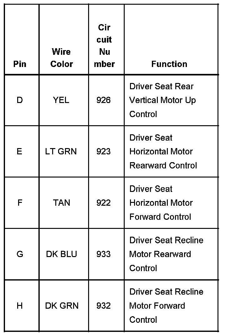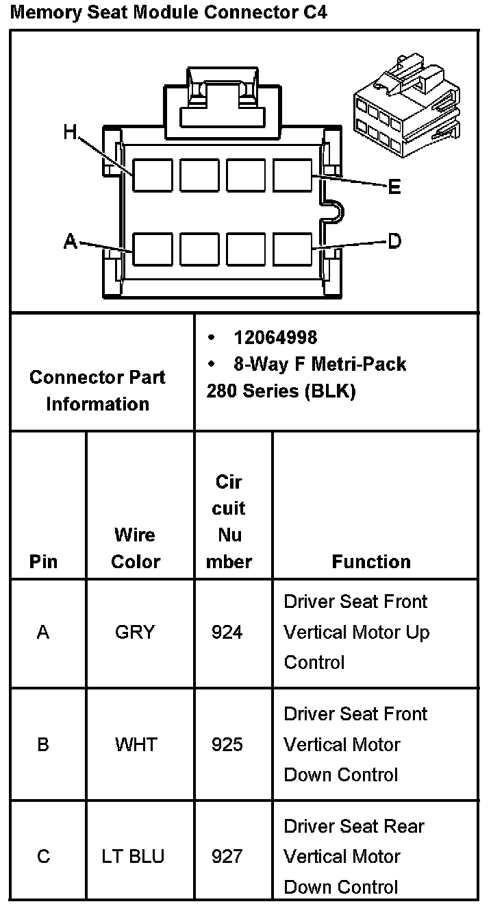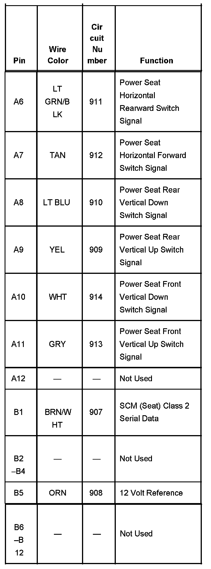 Home >> Chevrolet >> 2003 >> Venture V6-3.4L VIN E >> Repair and Diagnosis >> Diagrams >> Connector Views >> Power Seat Control Module