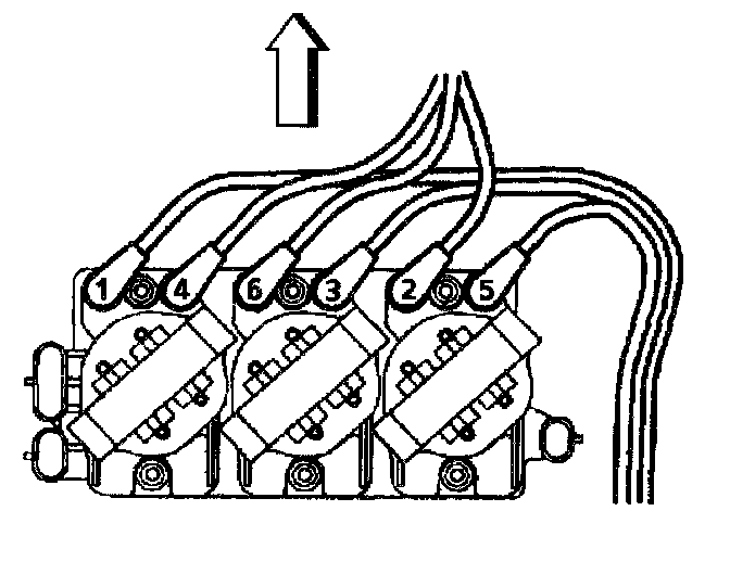 2. Note the position of spark plug wires for installation and disconnect the spark plug wires from the ignition coils.