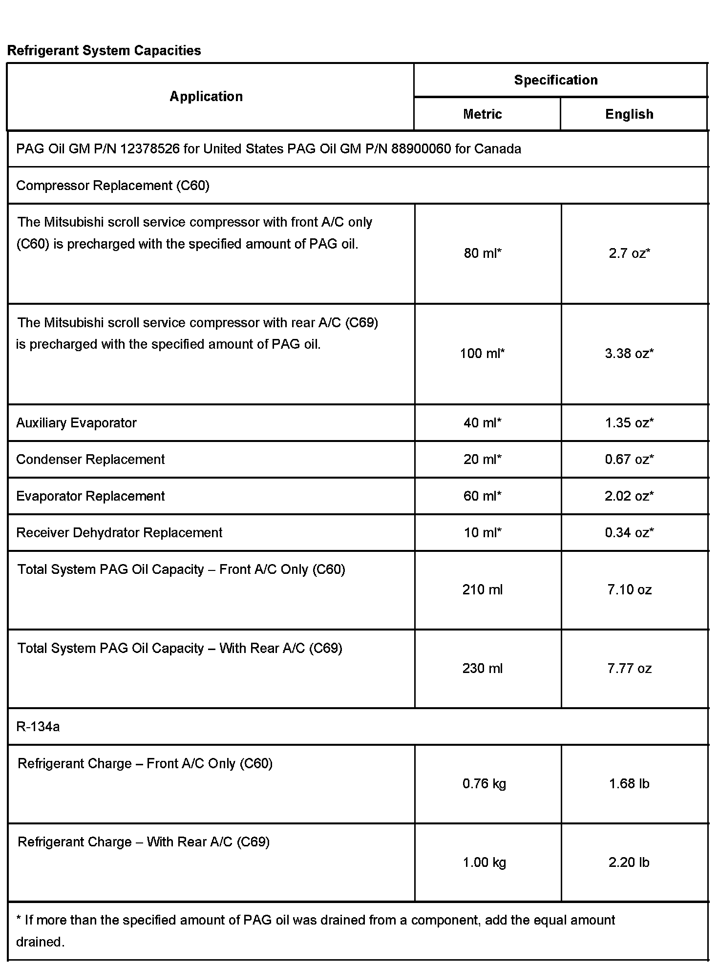 Capacity Specifications