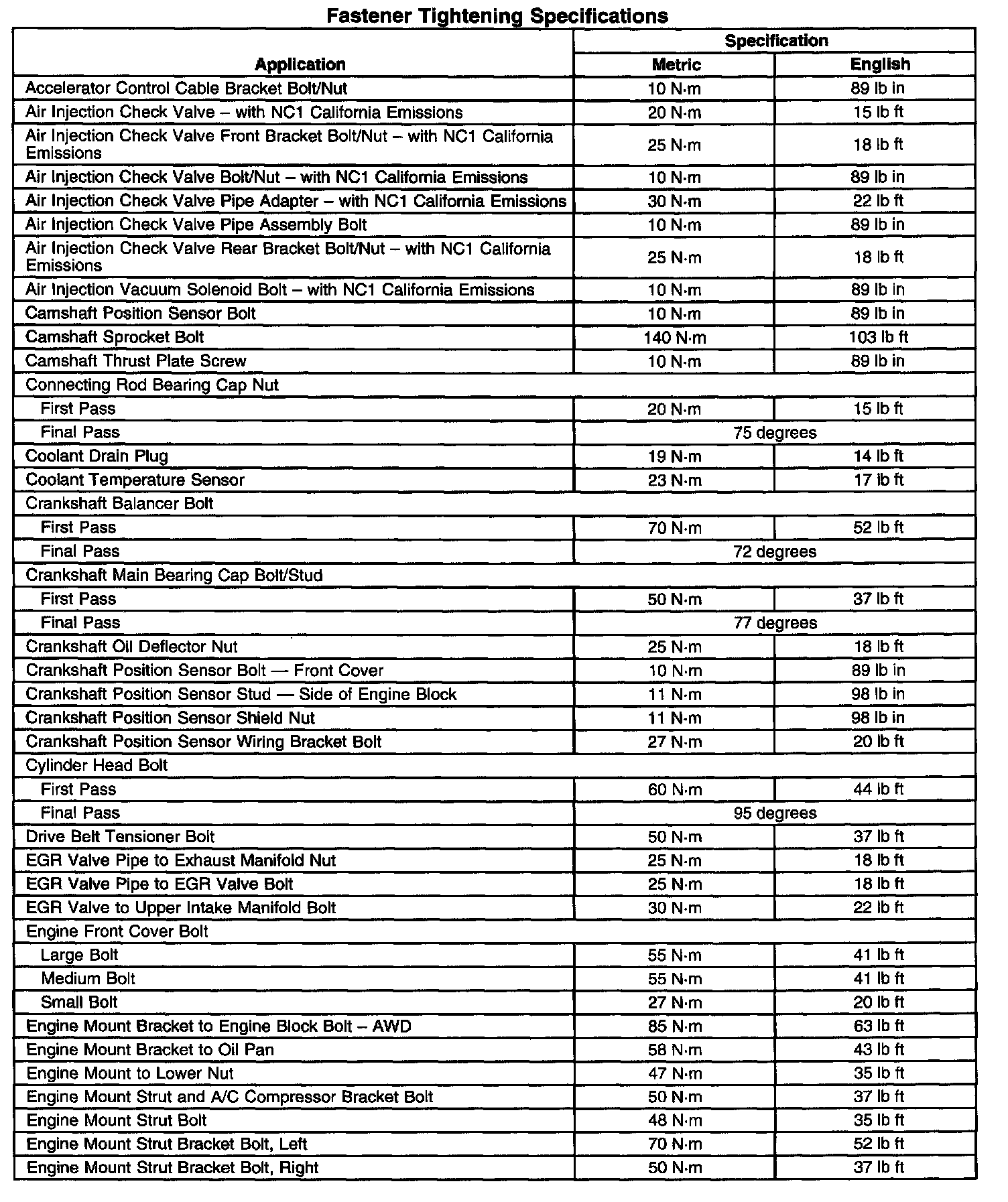 Fastener Tightening Specifications