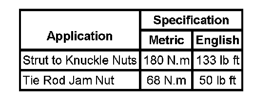 Fastener Tightening Specifications: