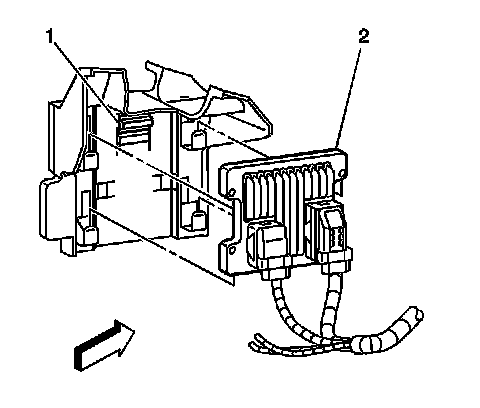1. Slide the PCM into the PCM bracket. The retaining tab (1) will lock in place.