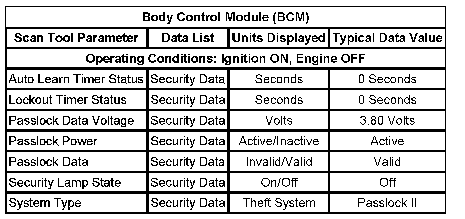 Body Control Module (BCM) Scan Tool Data List: