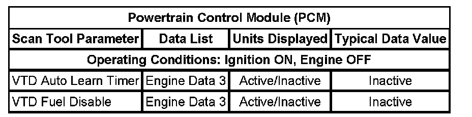 Powertrain Control Module (PCM) Scan Tool Data List: