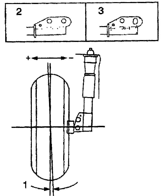 4. Place the strut in a vise and file the hole lateral -oblong. Compare the appearance of the holes before filing (2) with after filing (3).
