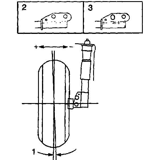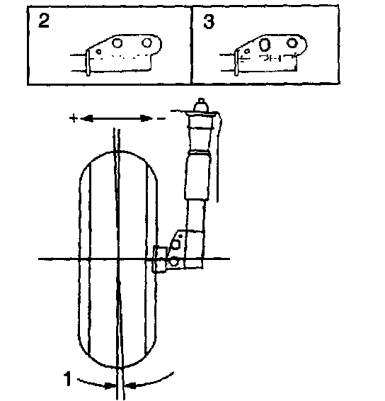 4. Place the strut in a vise and file the upper strut-to-knuckle hole lateral - oblong. Compare the appearance of the holes before filing (2) with l after filing (3).