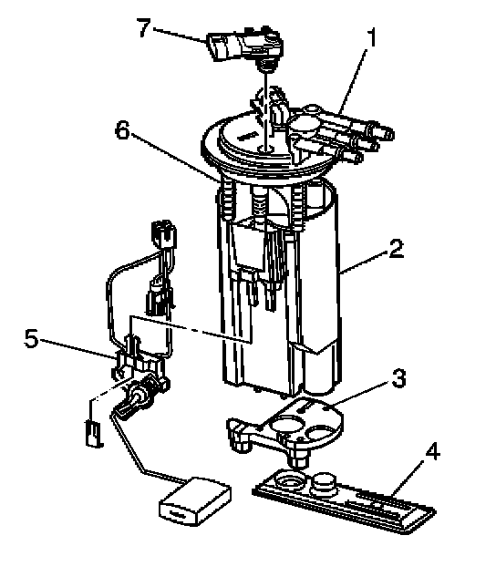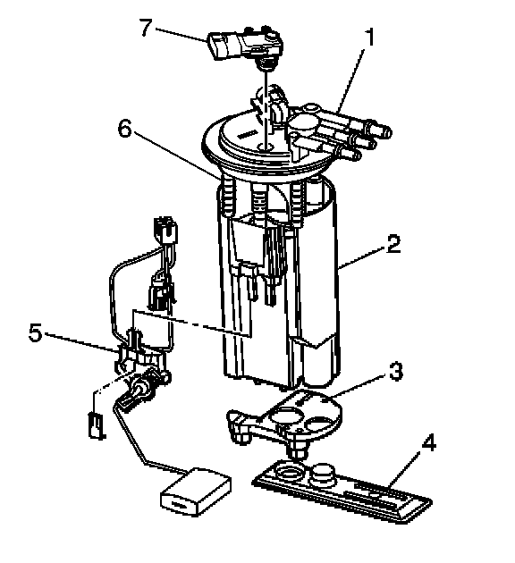 1. Install the fuel level sensor (5) to the fuel sender assembly.