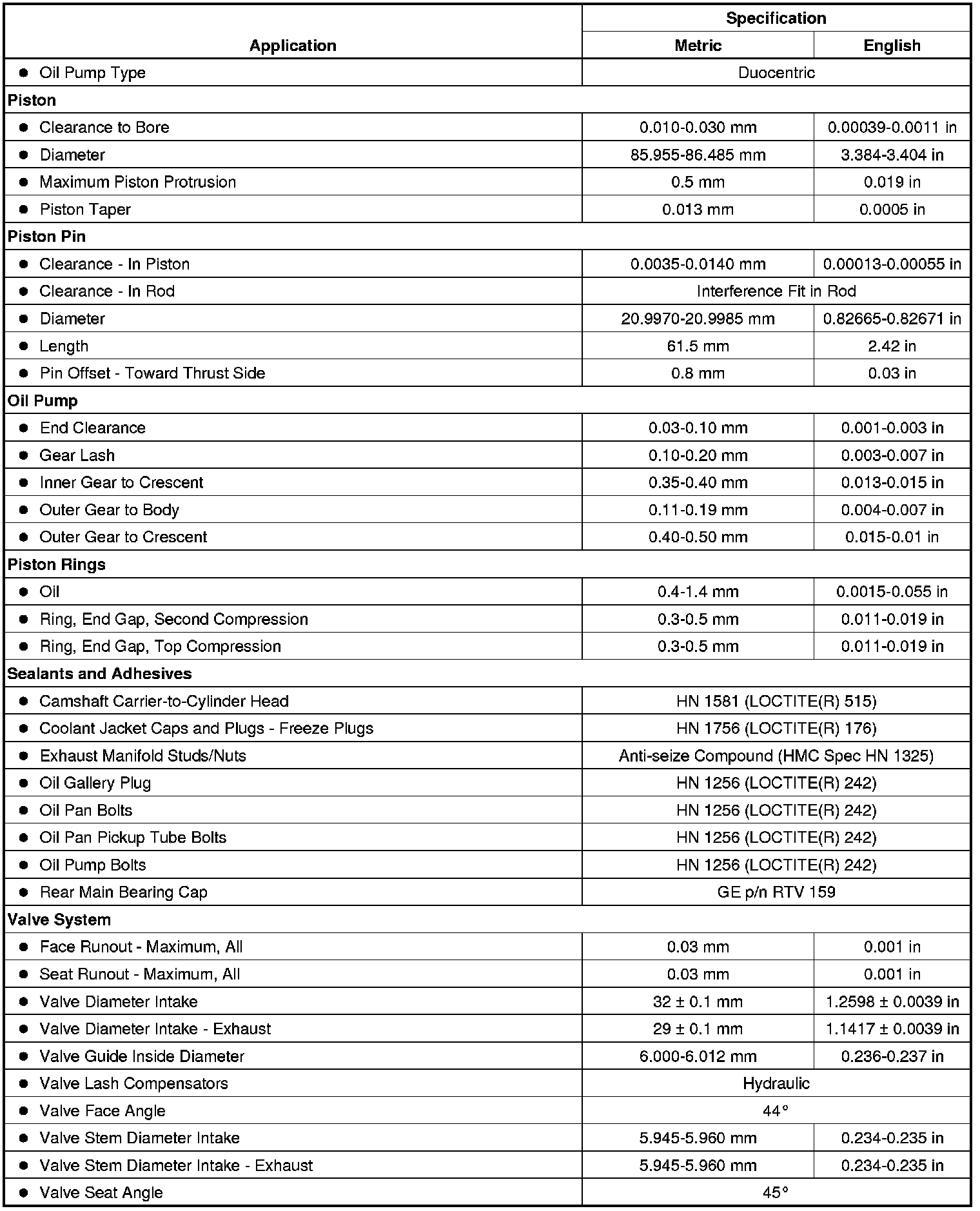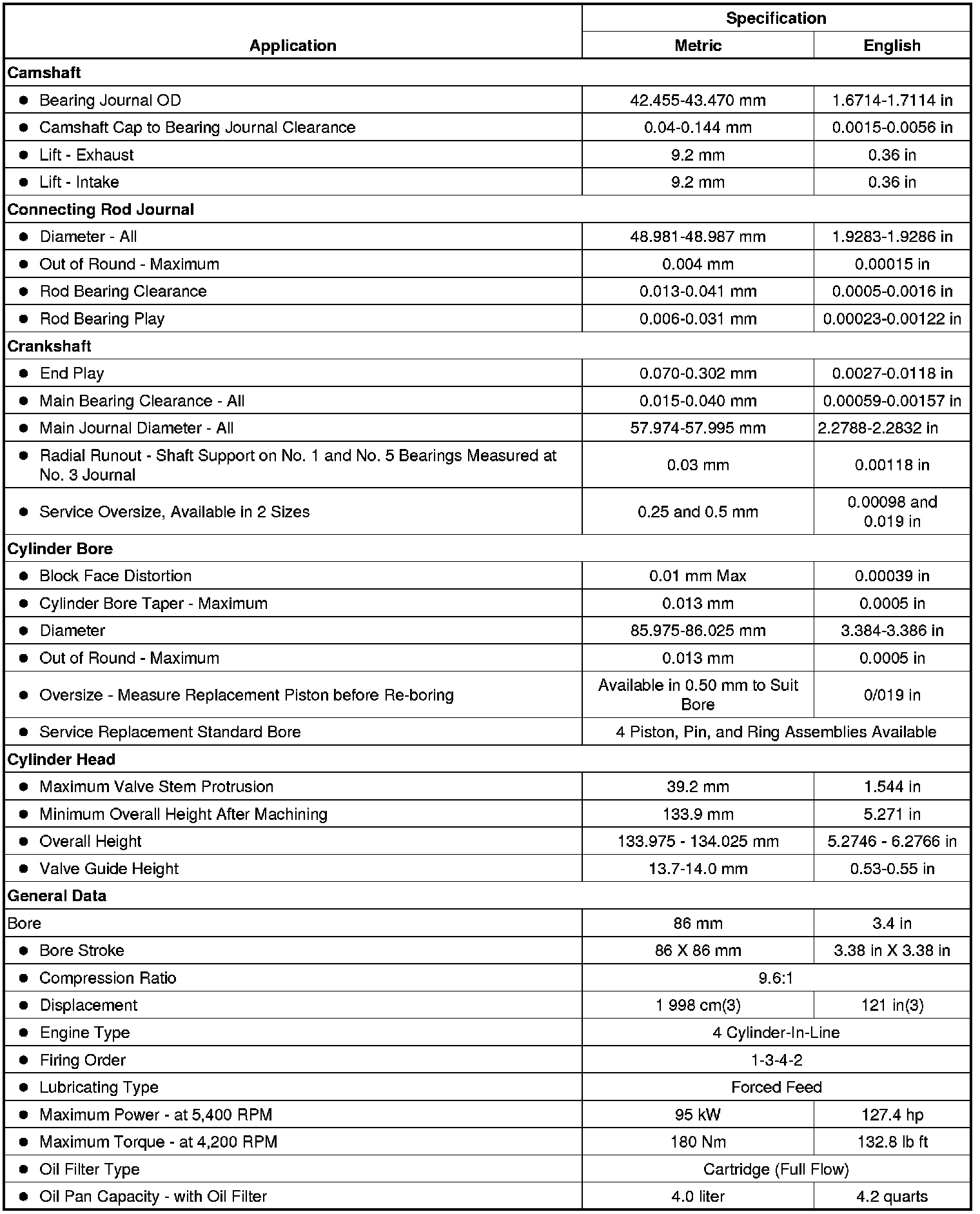 Engine Mechanical Specifications