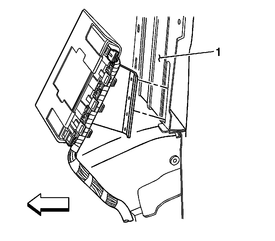 8. Install the tab (1) retaining the BCM mounting bracket to the console bracket.
