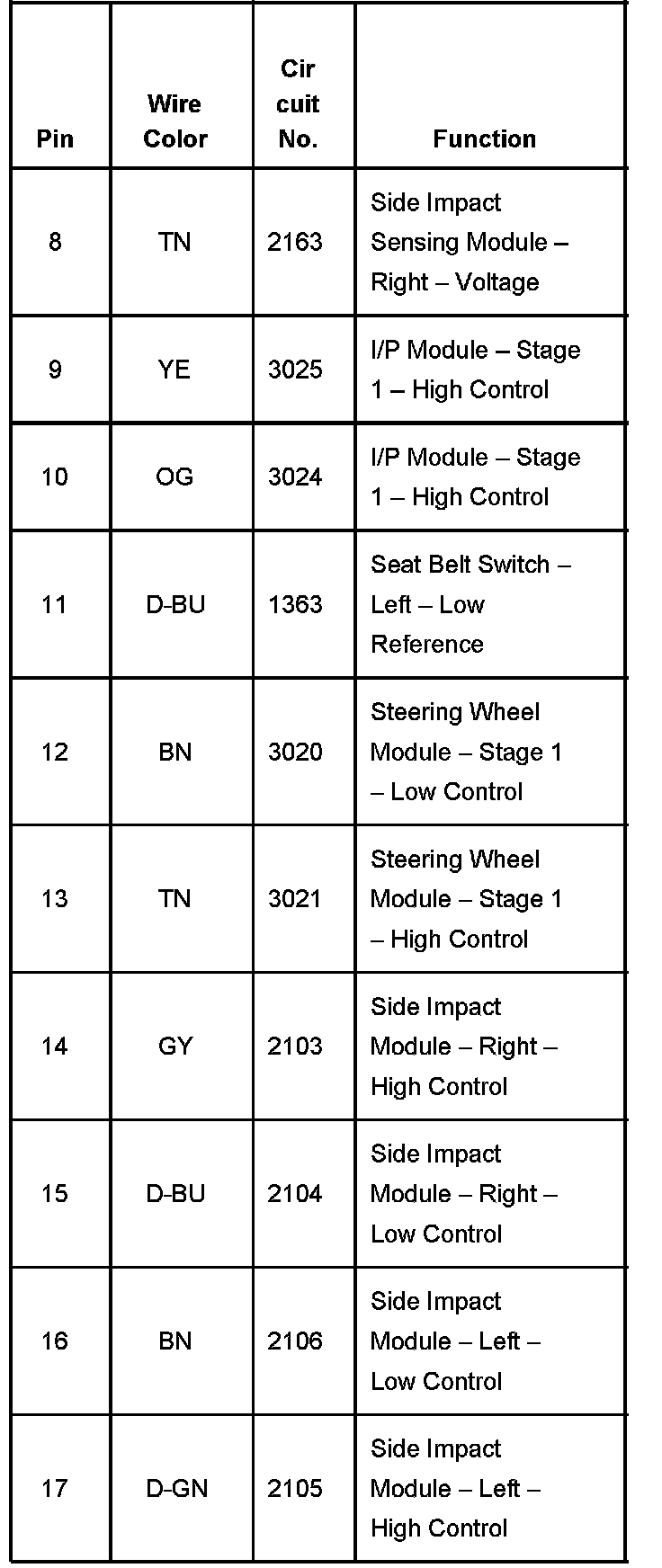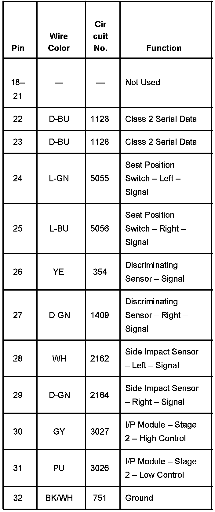 Home >> Chevrolet >> 2004 >> SSR V8-5.3L VIN P >> Repair and Diagnosis >> Diagrams >> Connector Views >> Air Bag Control Module