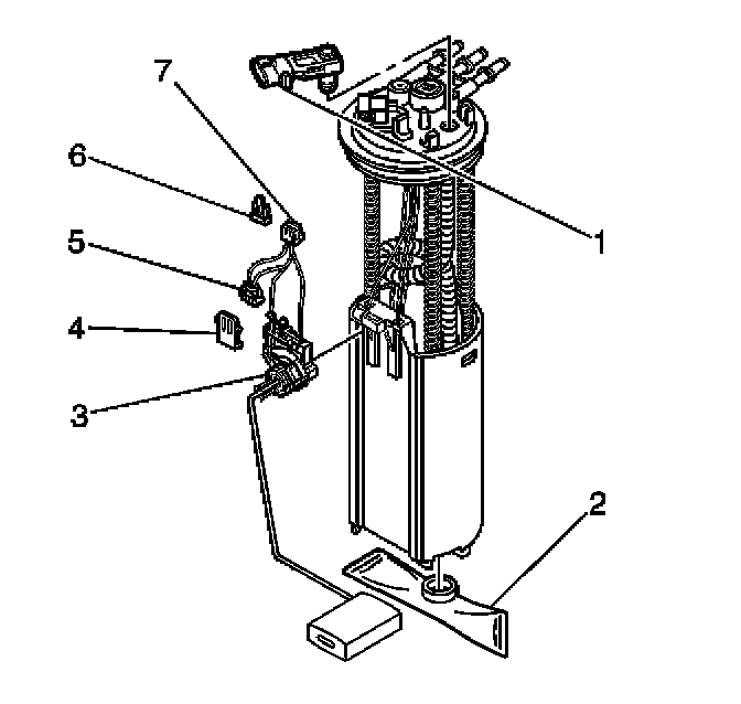 6. Squeeze the locking tangs and remove the fuel level sensor (3).