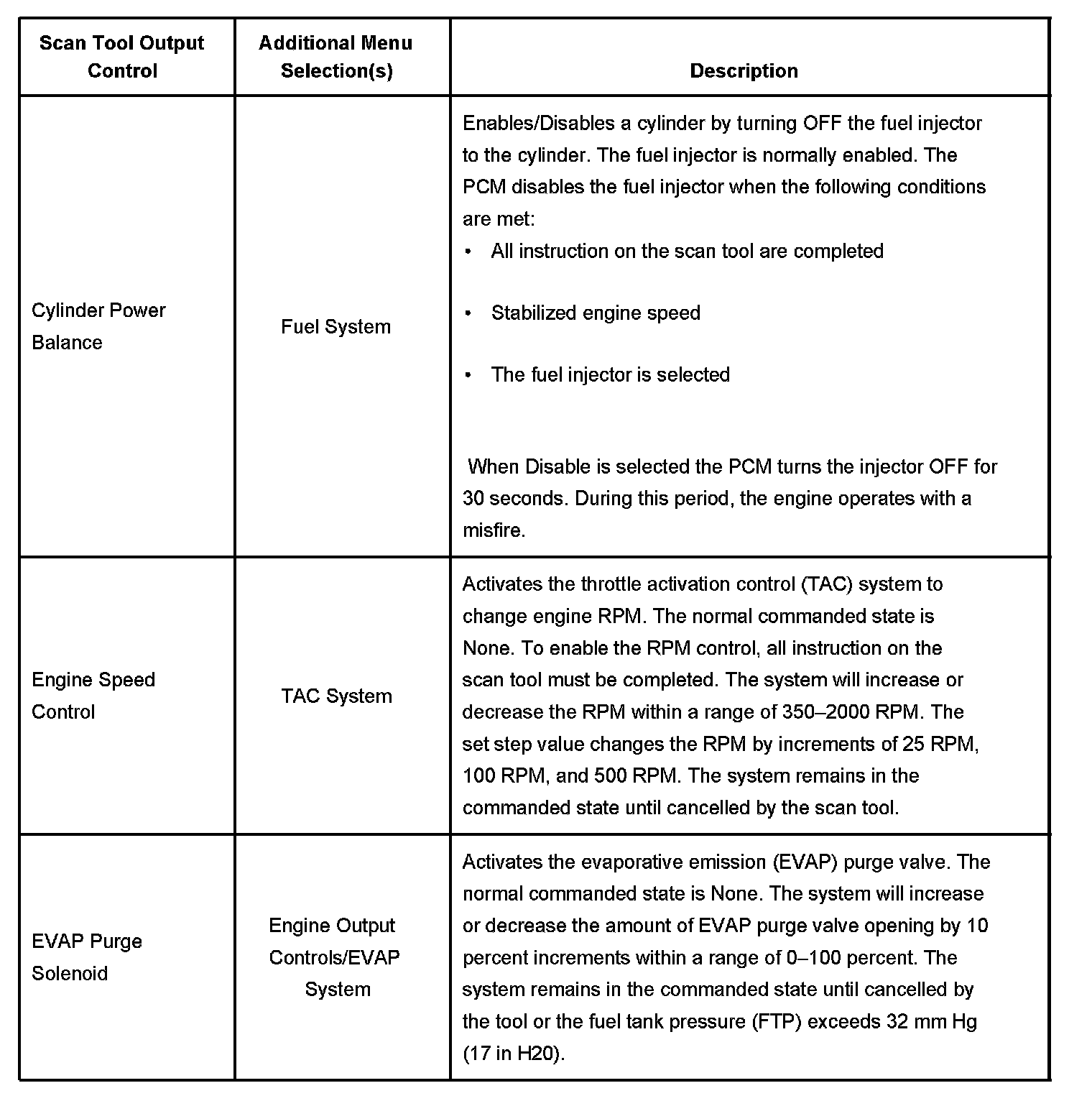 Home >> Chevrolet >> 2004 >> SSR V8-5.3L VIN P >> Repair and Diagnosis >> Powertrain Management >> Computers and Control Systems >> Testing and Inspection >> Scan Tool Testing and Procedures >> Scan Tool Output Controls