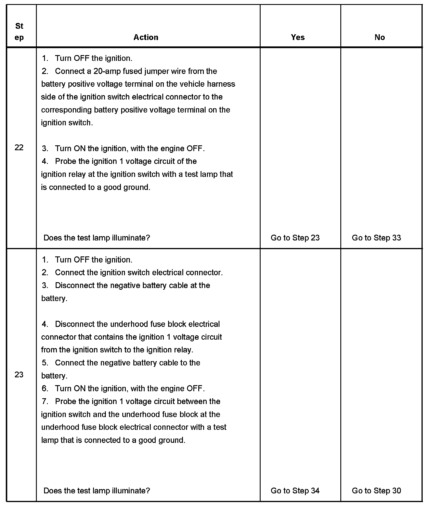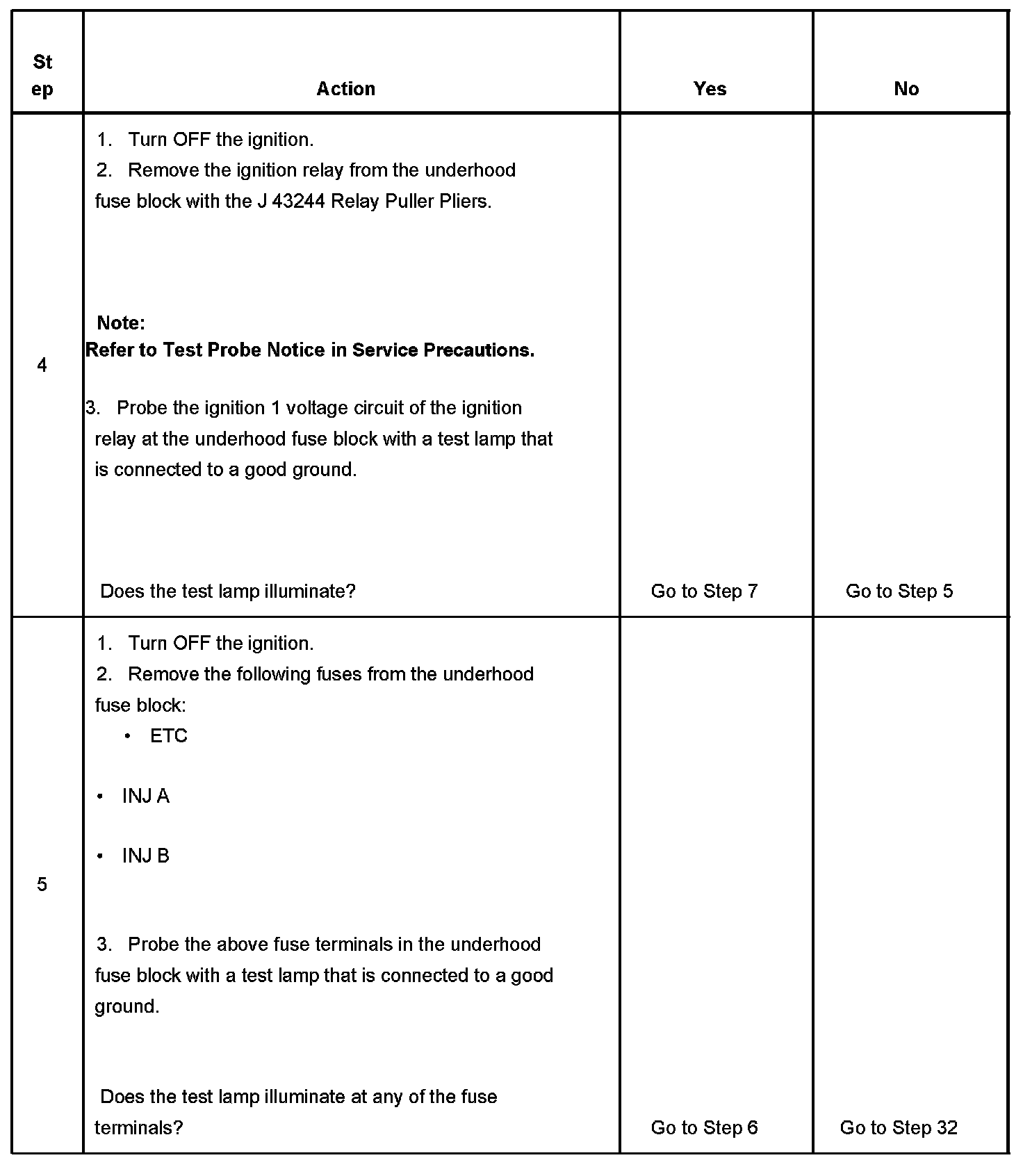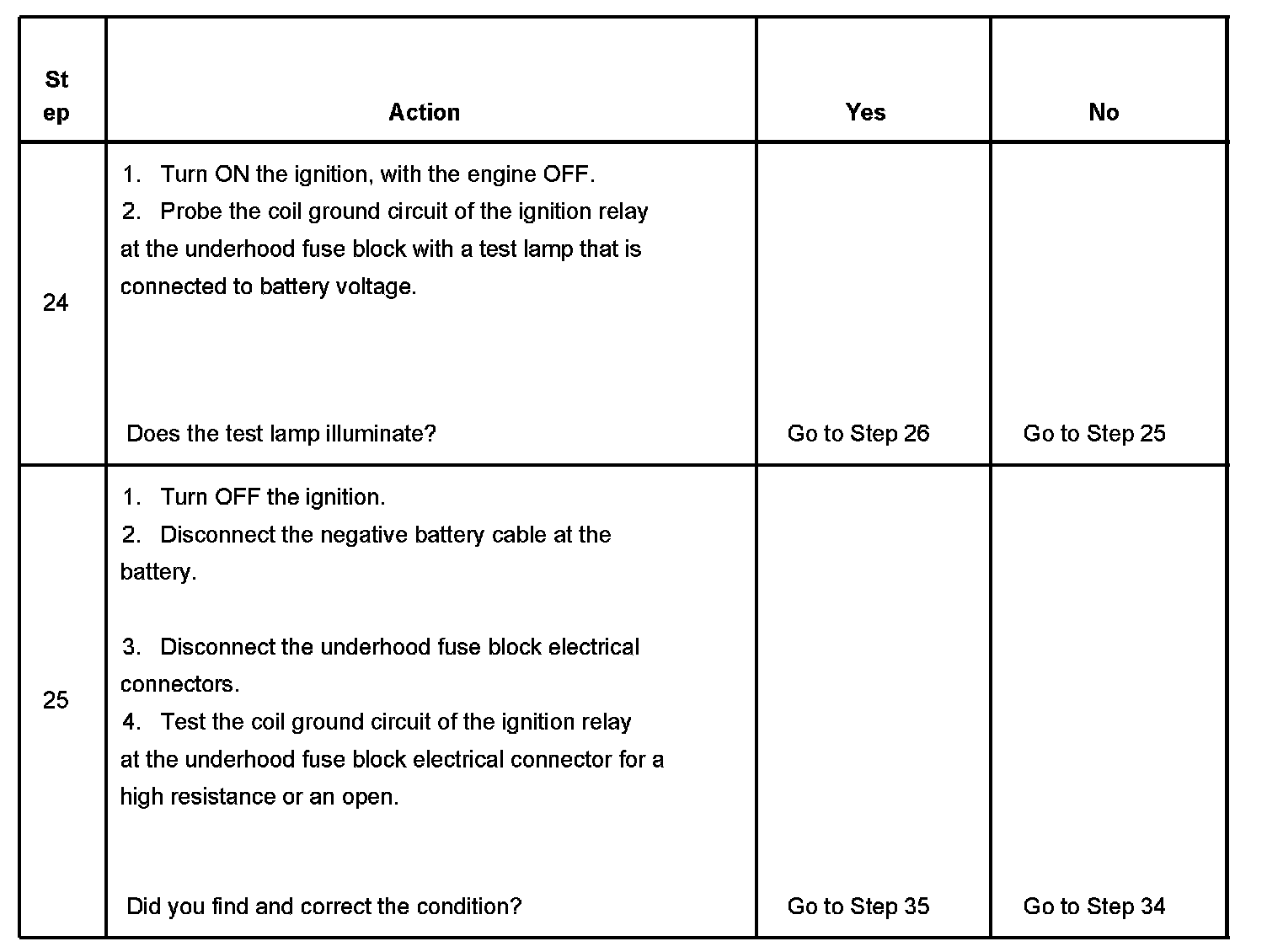 The ignition relay table assumes that the vehicle battery is fully charged.