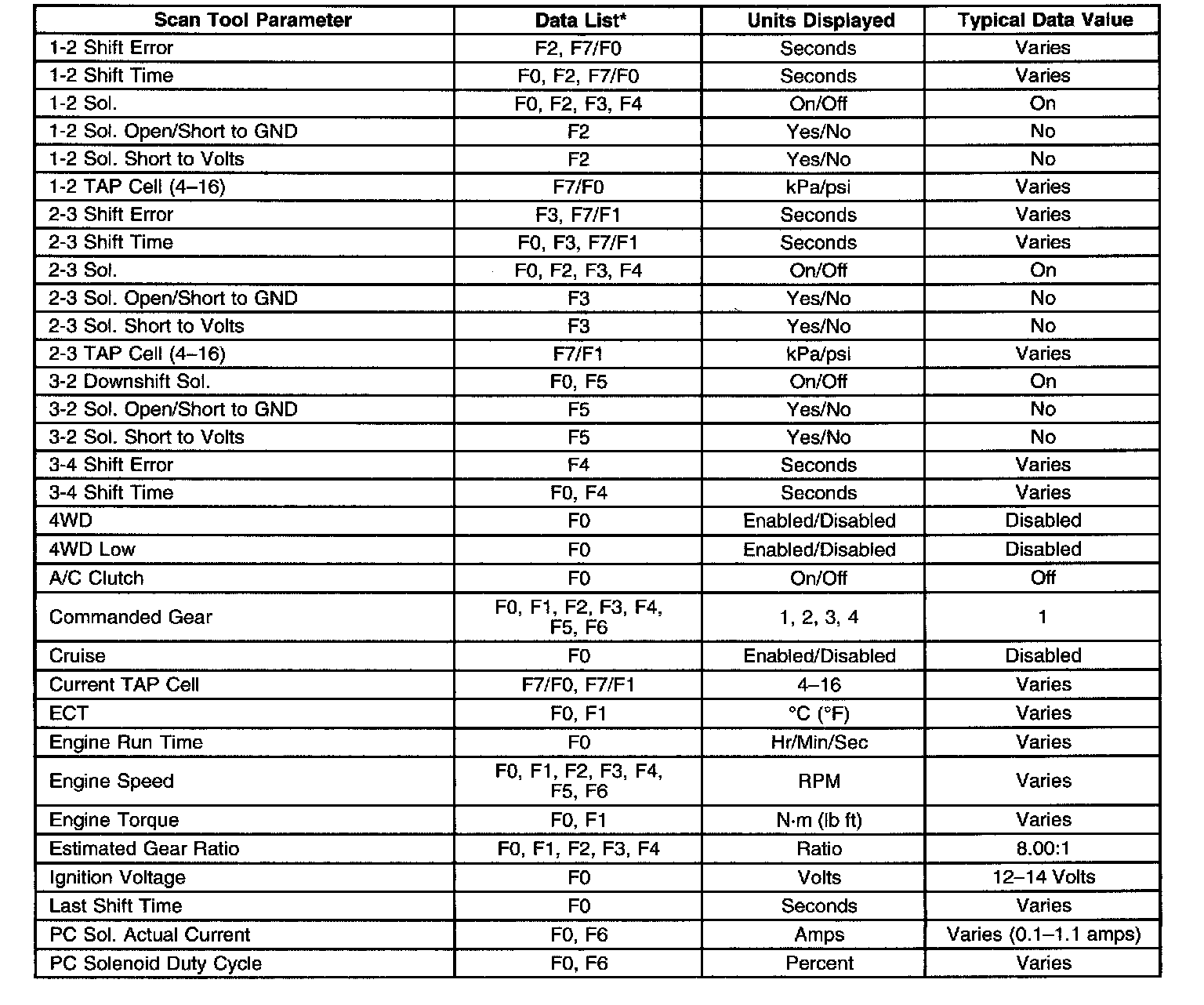 Transmission Scan Tool Data ListUse the scan tool data list under the following conditions: