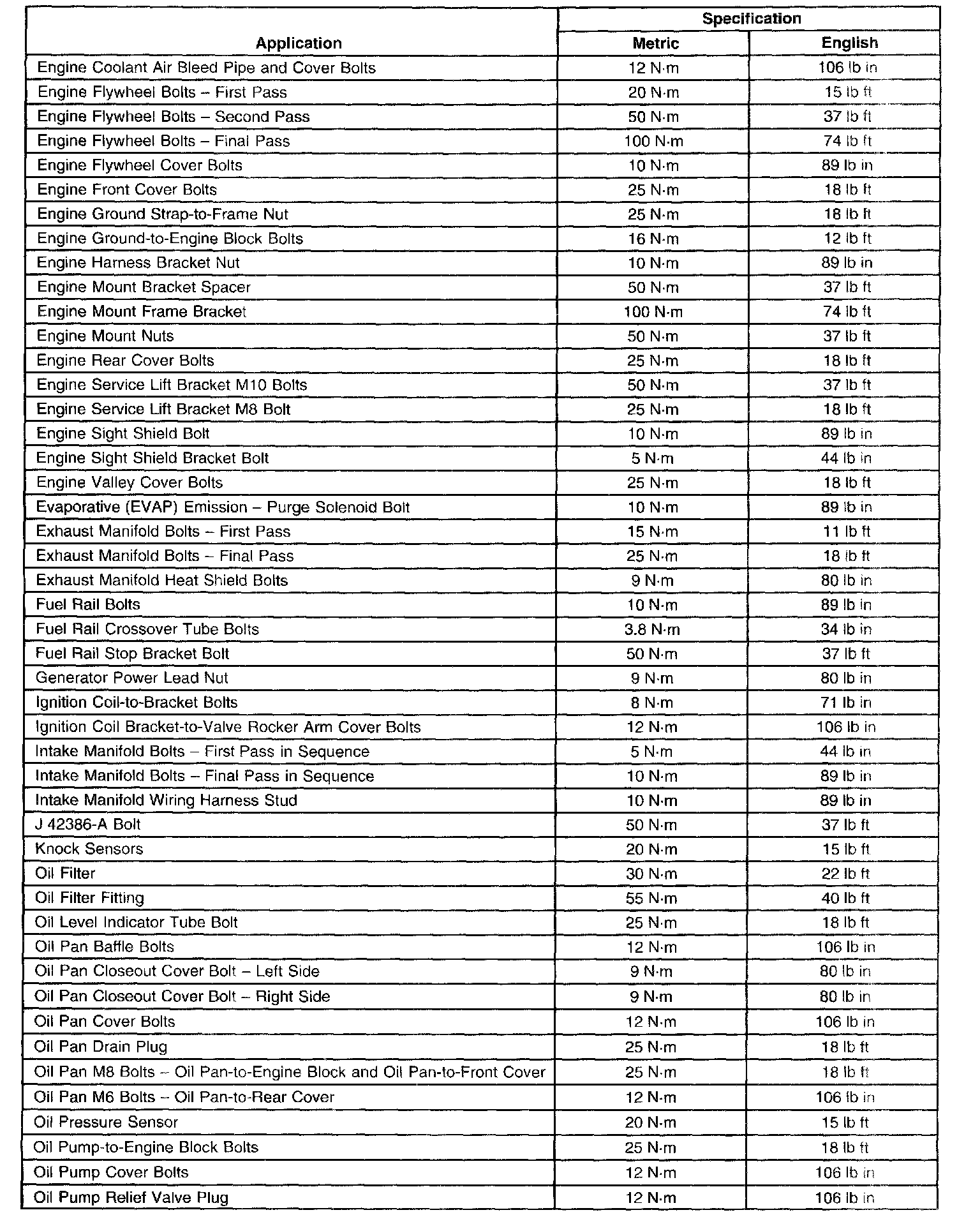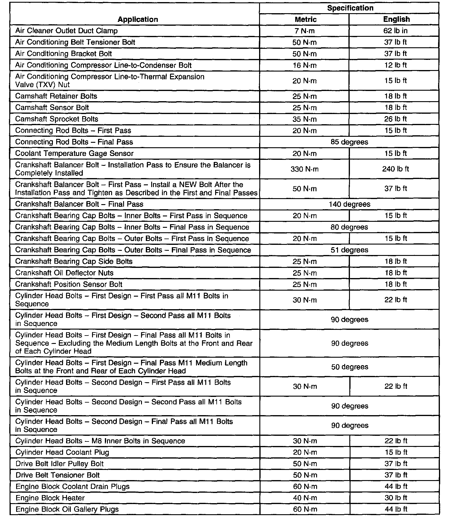 Torque Specifications