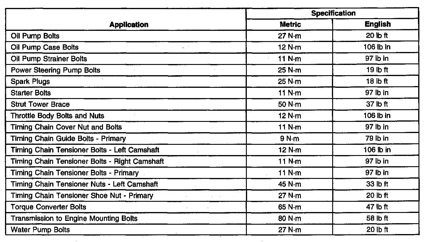 Home >> Chevrolet >> 2004 >> Tracker 2WD V6-2.5L VIN 1 >> Repair and Diagnosis >> Specifications >> Mechanical Specifications >> Engine >> Cylinder Block Assembly >> System Specifications