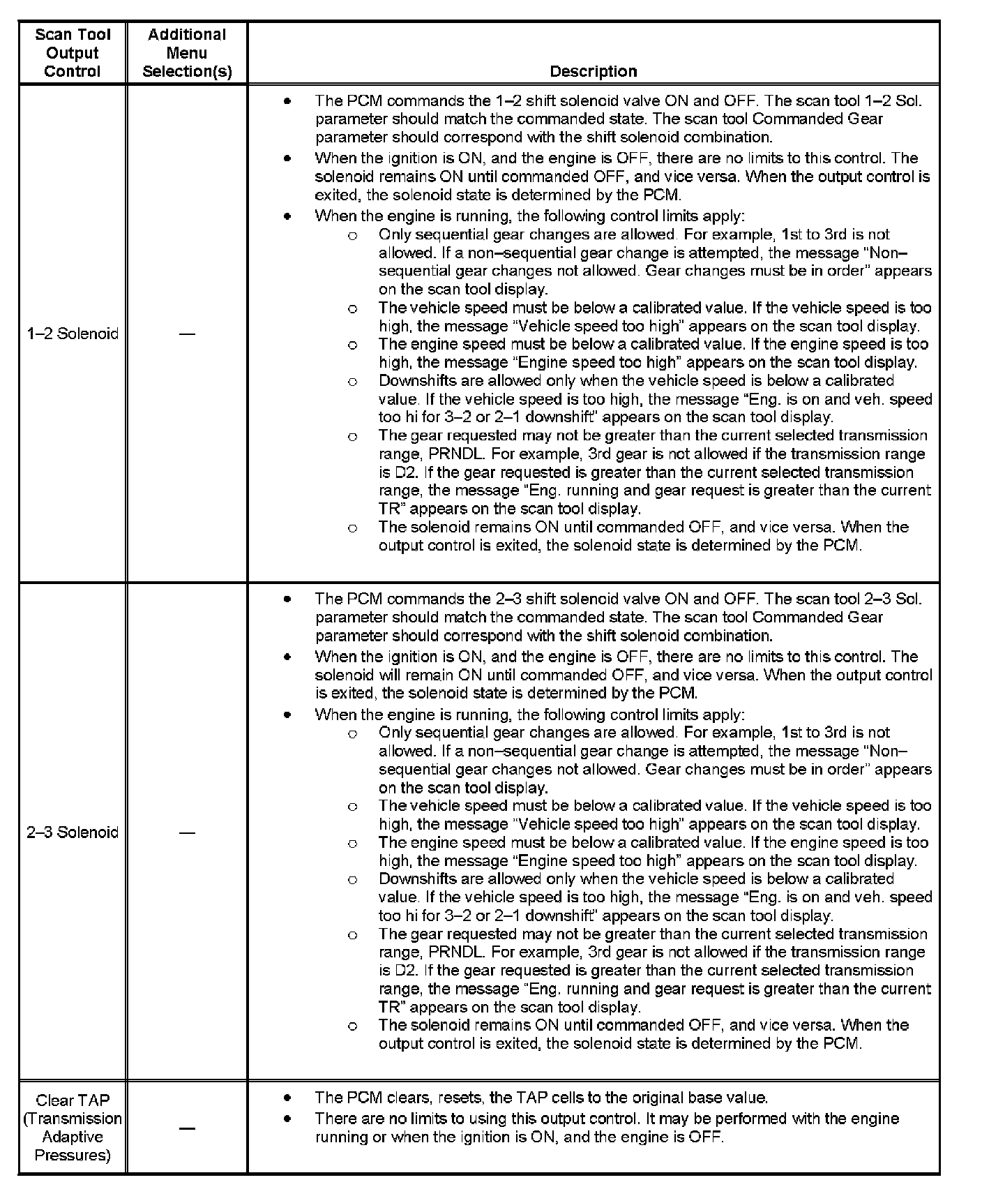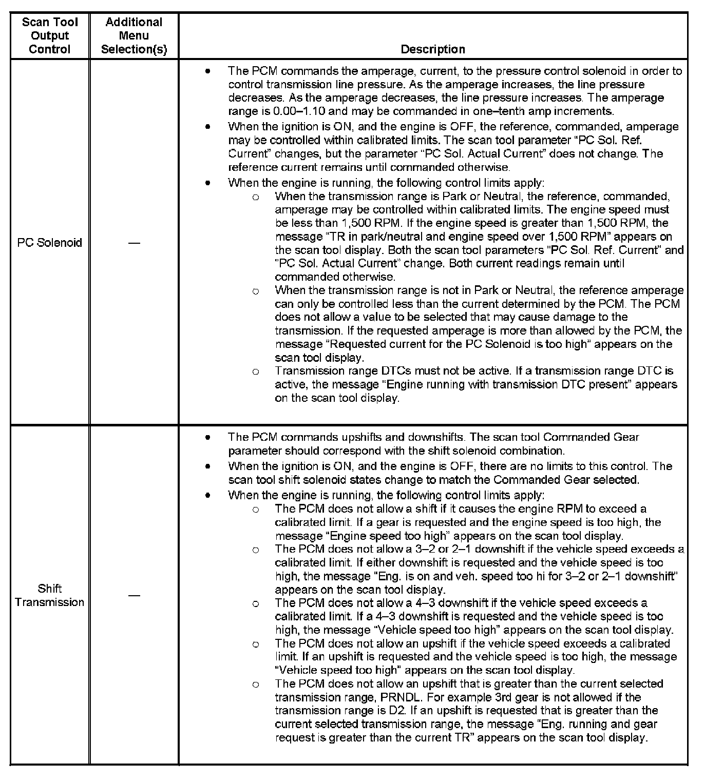 Scan Tool Output Controls