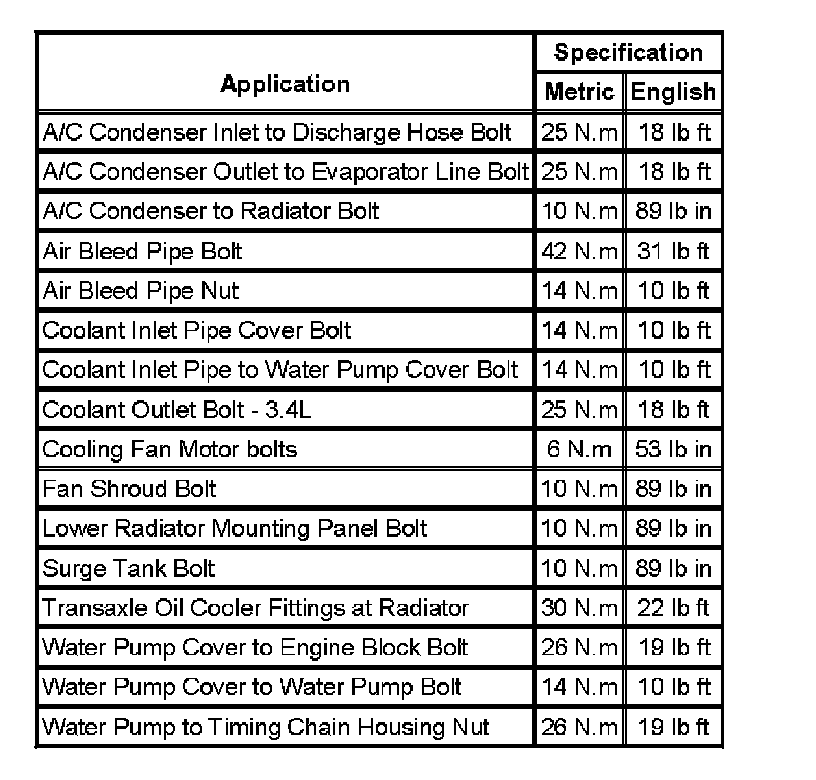 Fastener Tightening Specifications: