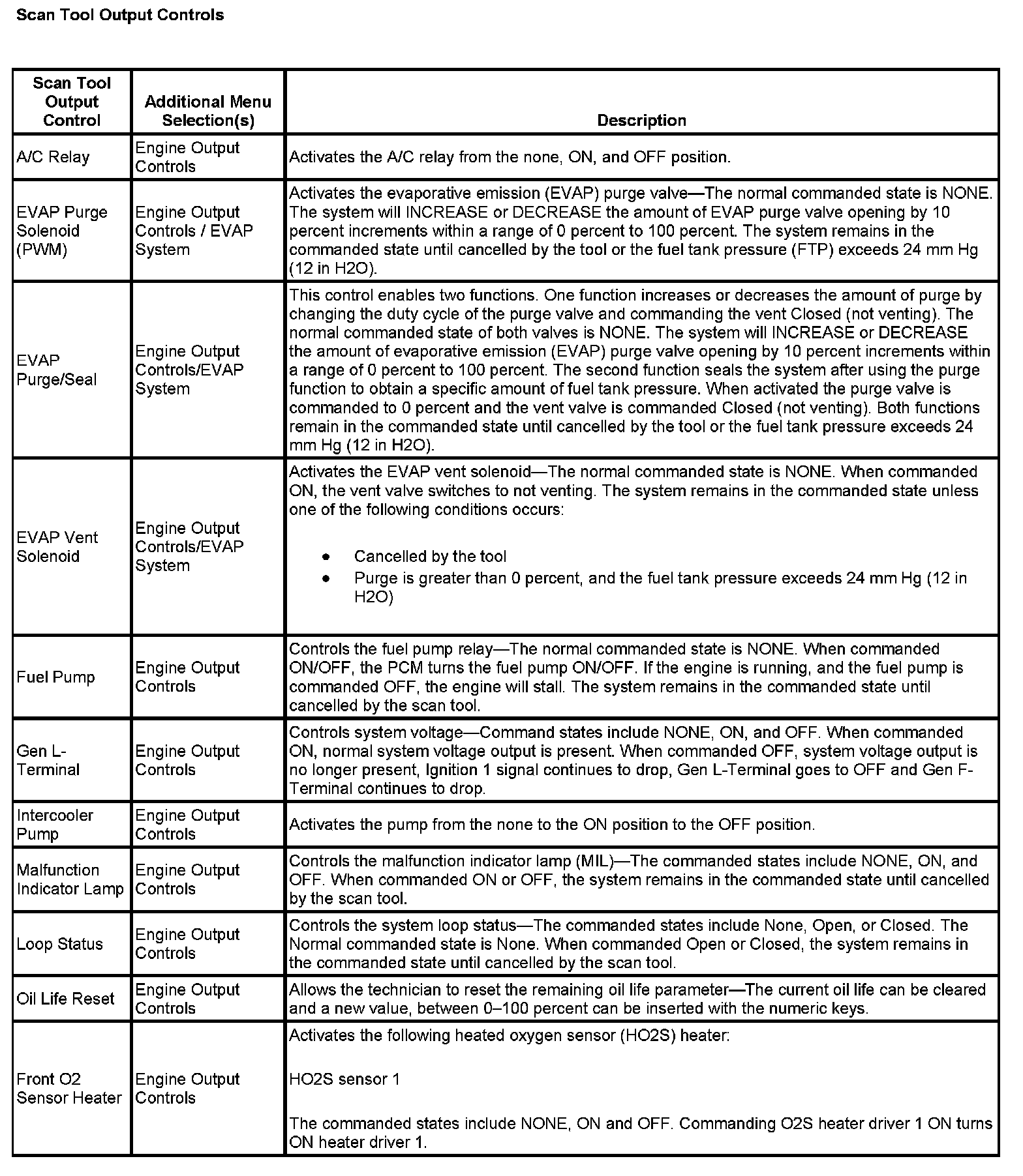 Scan Tool Output Controls