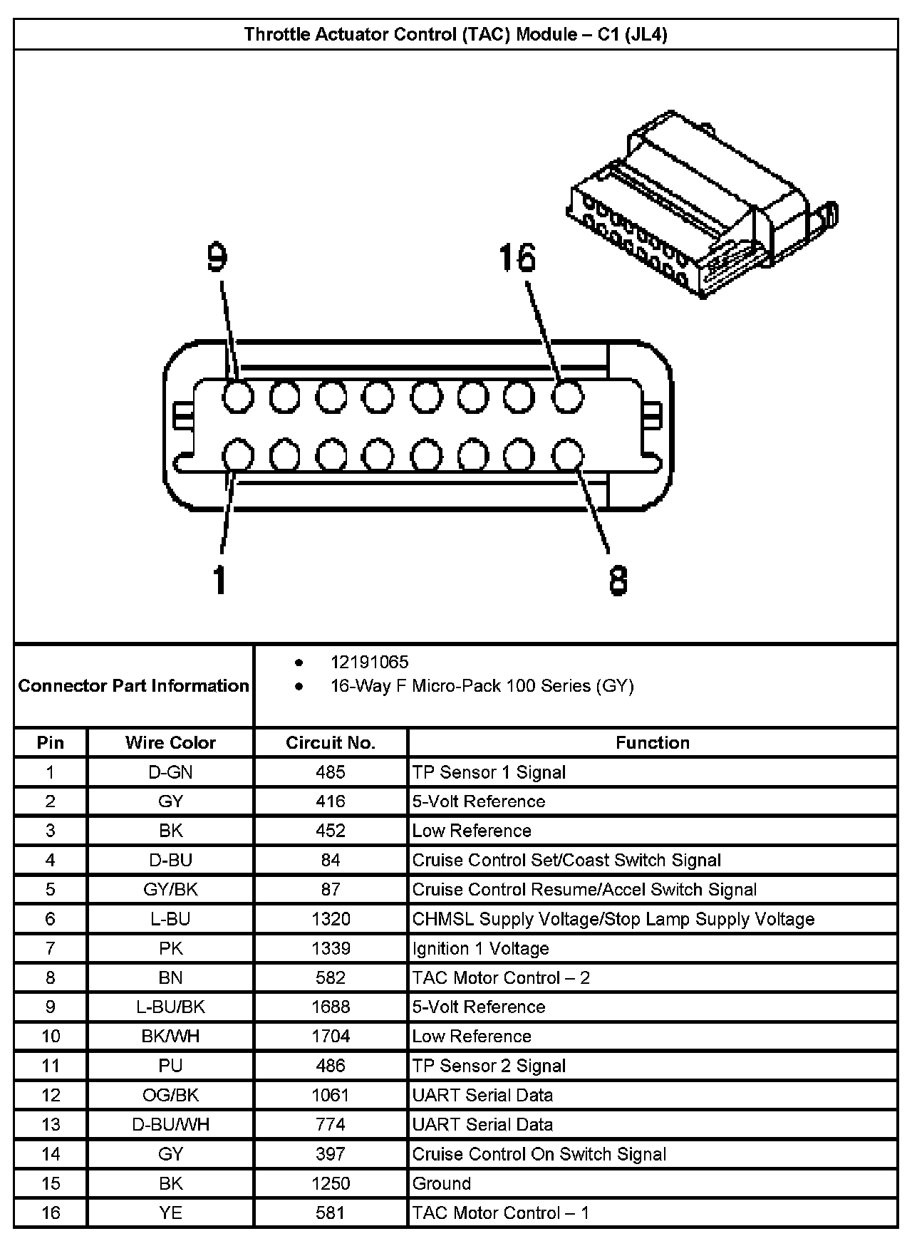 Throttle Actuator Control (TAC) Module - C1 (With RPO Code JL4):