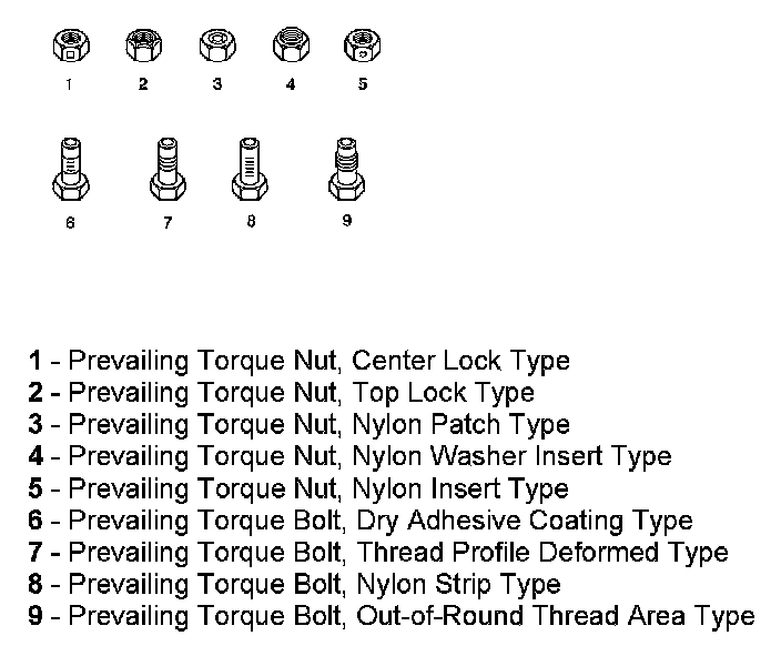 These fasteners accomplish the thread interface by the presence of a thread-locking compound on the fastener threads. Refer to the appropriate repair procedure in order to determine if the fastener may be reused and the applicable thread-locking compound to apply to the fastener.
