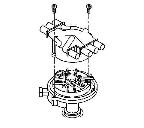 7. Remove the 2 screws that retain the distributor cap to the housing.