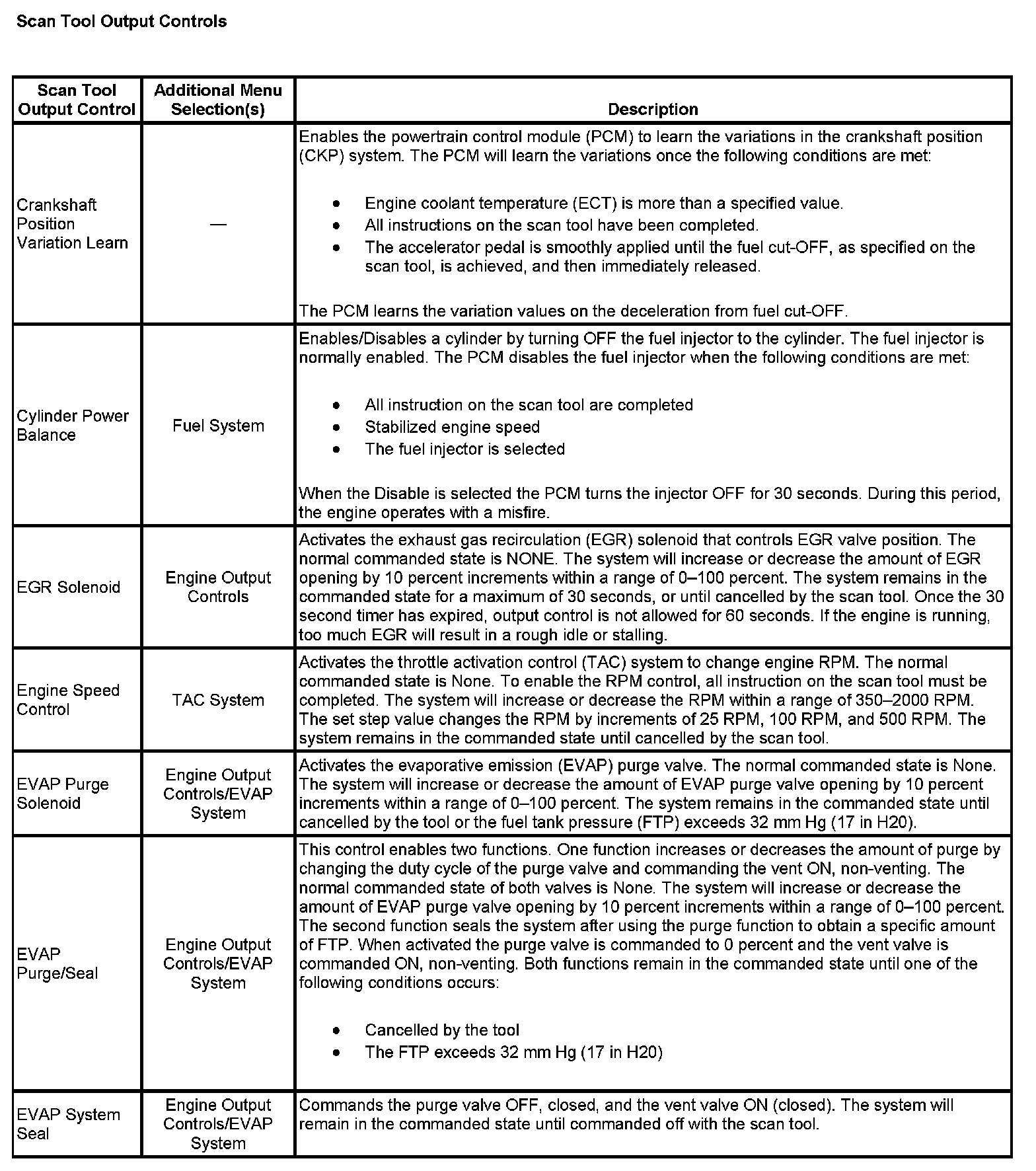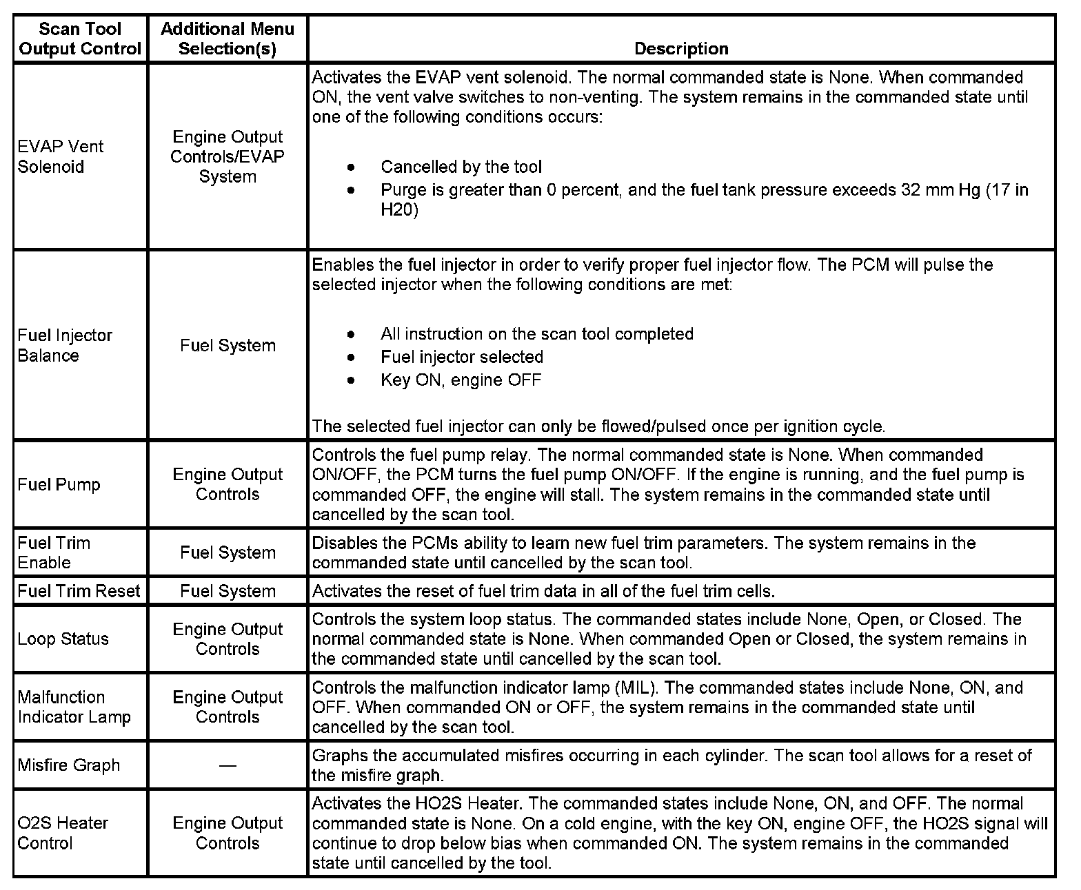 Scan Tool Output Controls