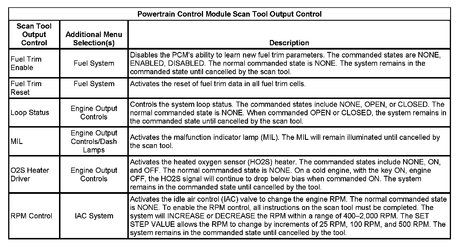 Scan Tool Output Controls