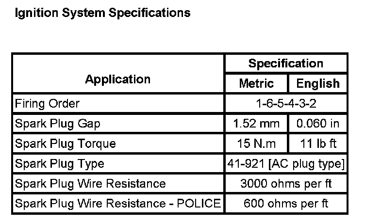 Ignition System: Specifications