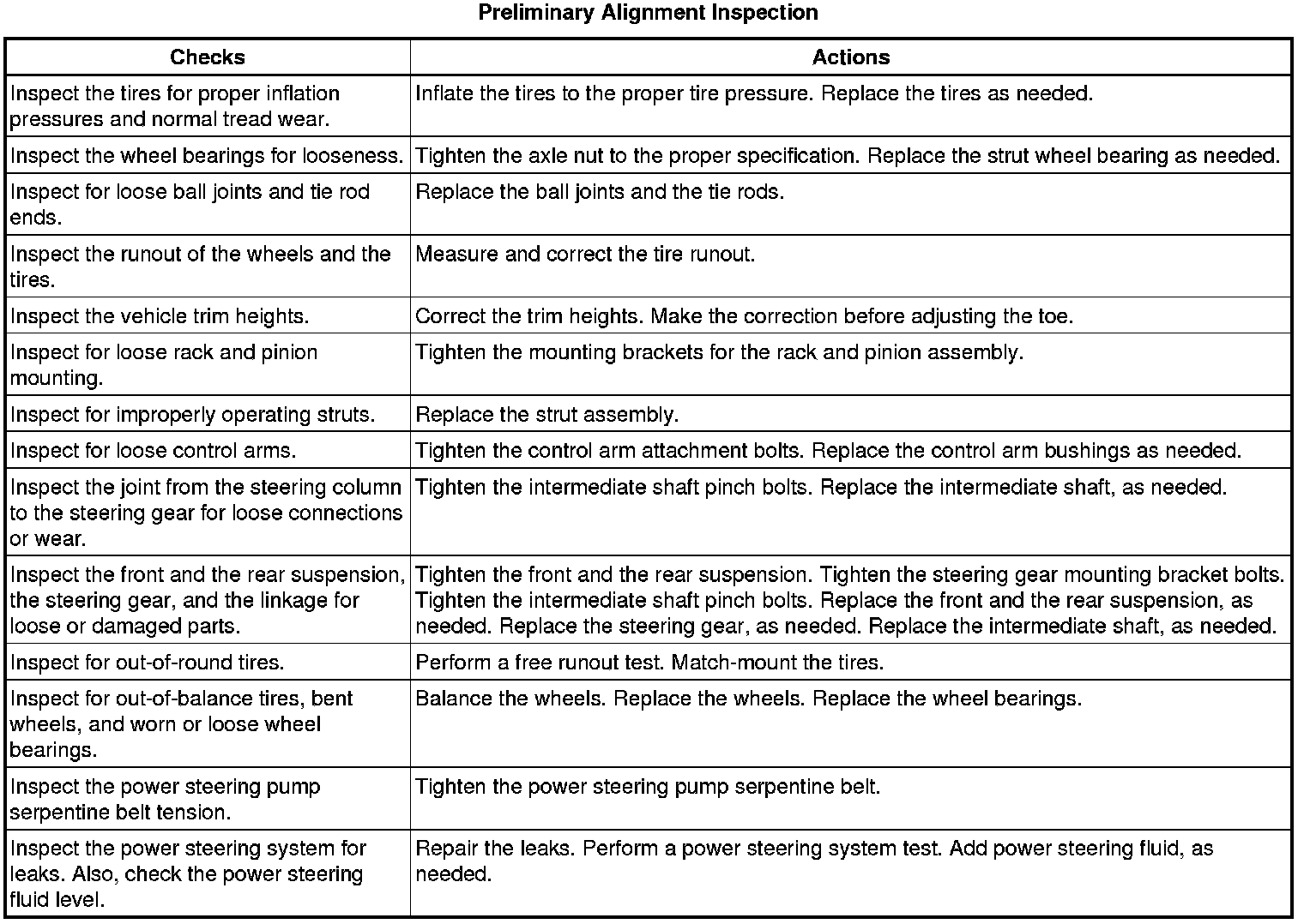 Preliminary Alignment Inspection