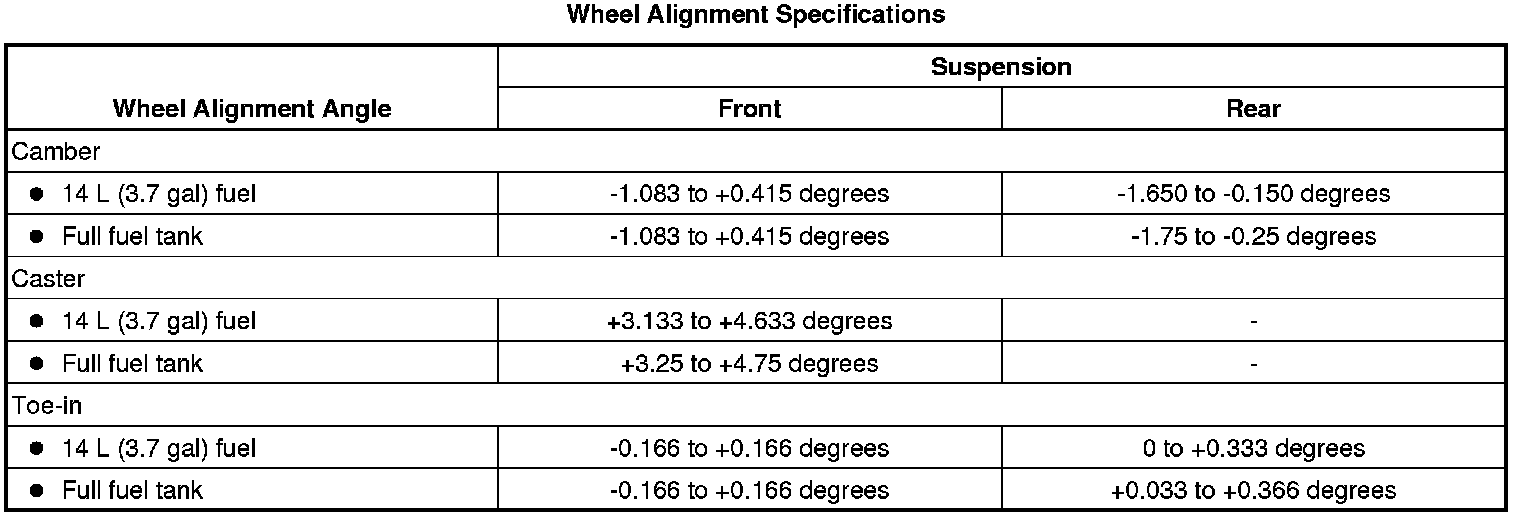 Wheel Alignment Specifications