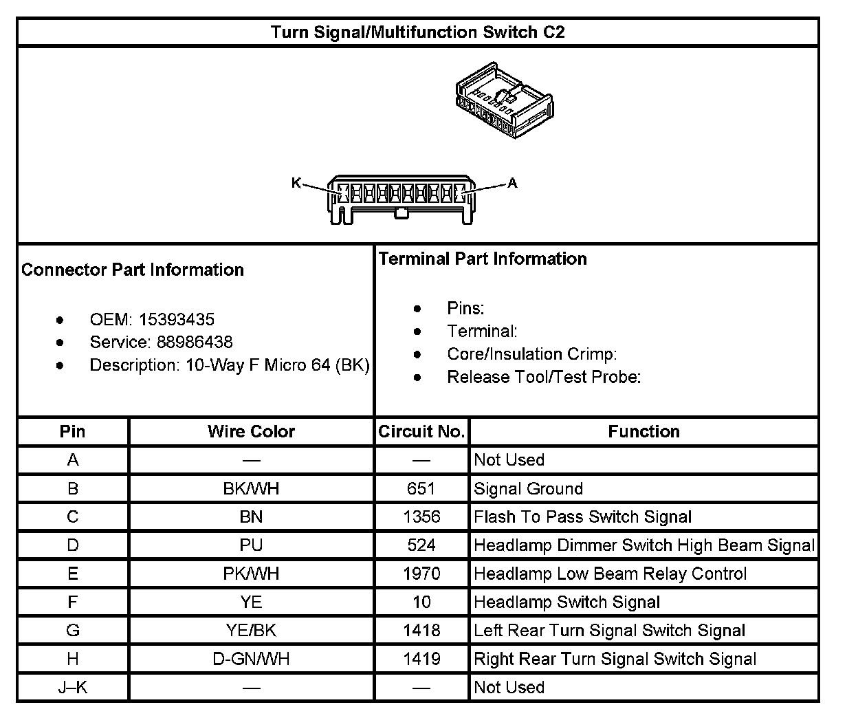 Turn Signal/Multifunction Switch C2: