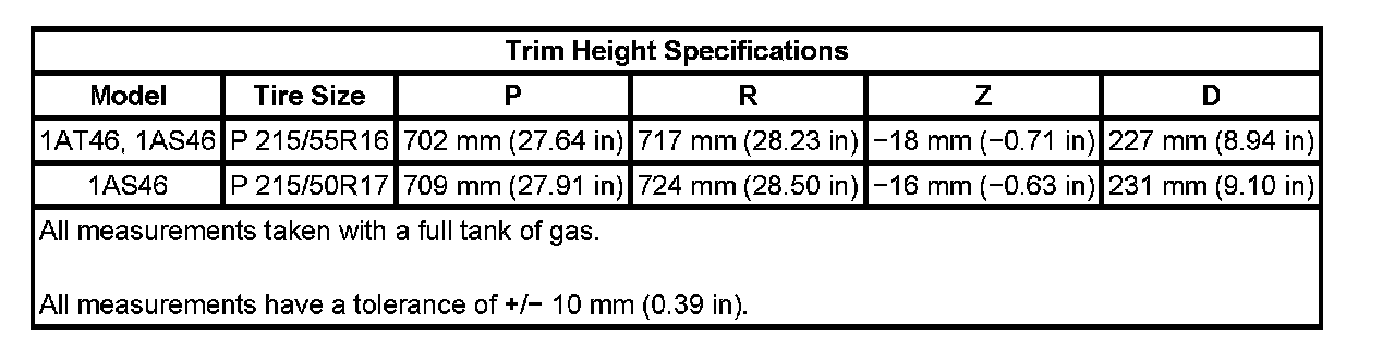 Trim Height Specifications: