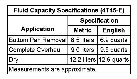 Fluid Capacity Specifications: