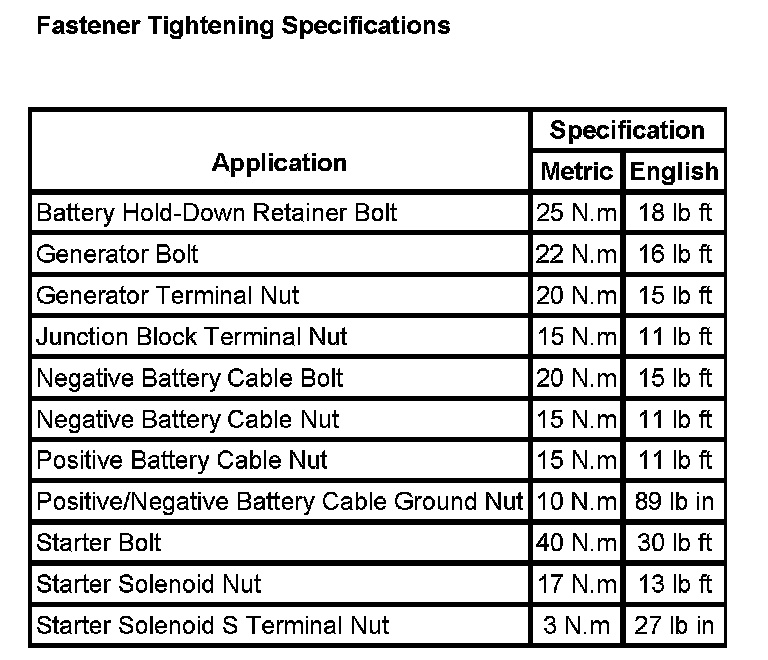 Starting and Charging: Specifications