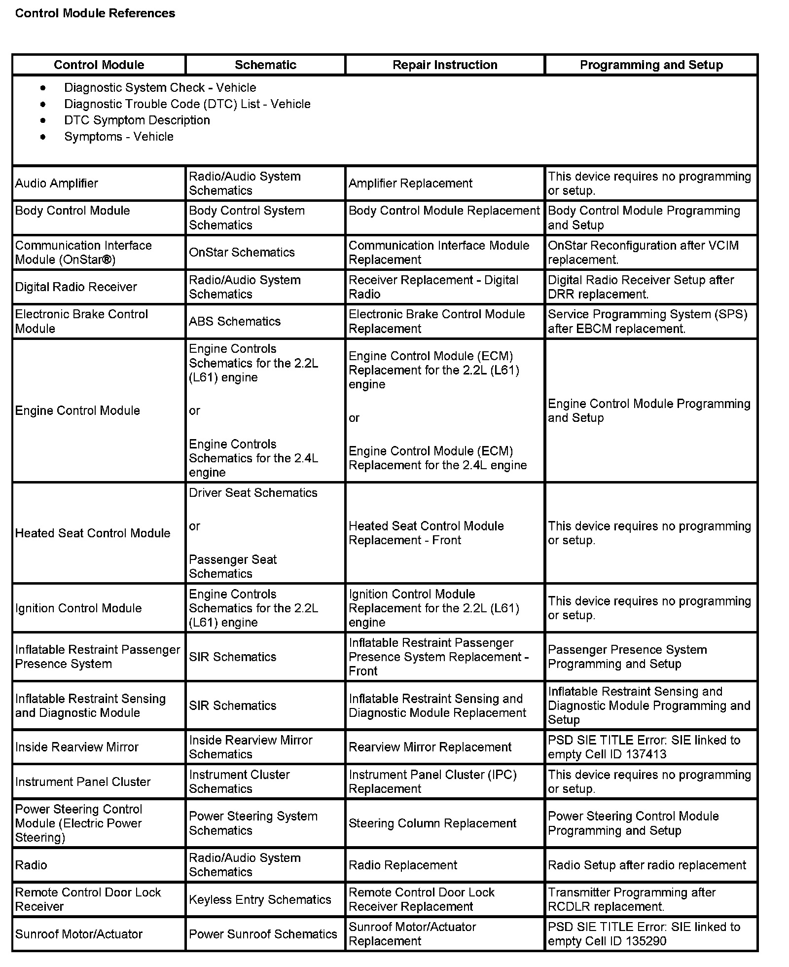 Control Module References (Part 1):