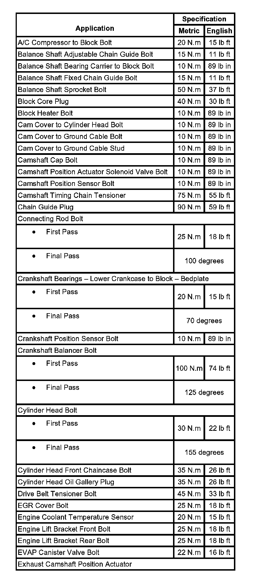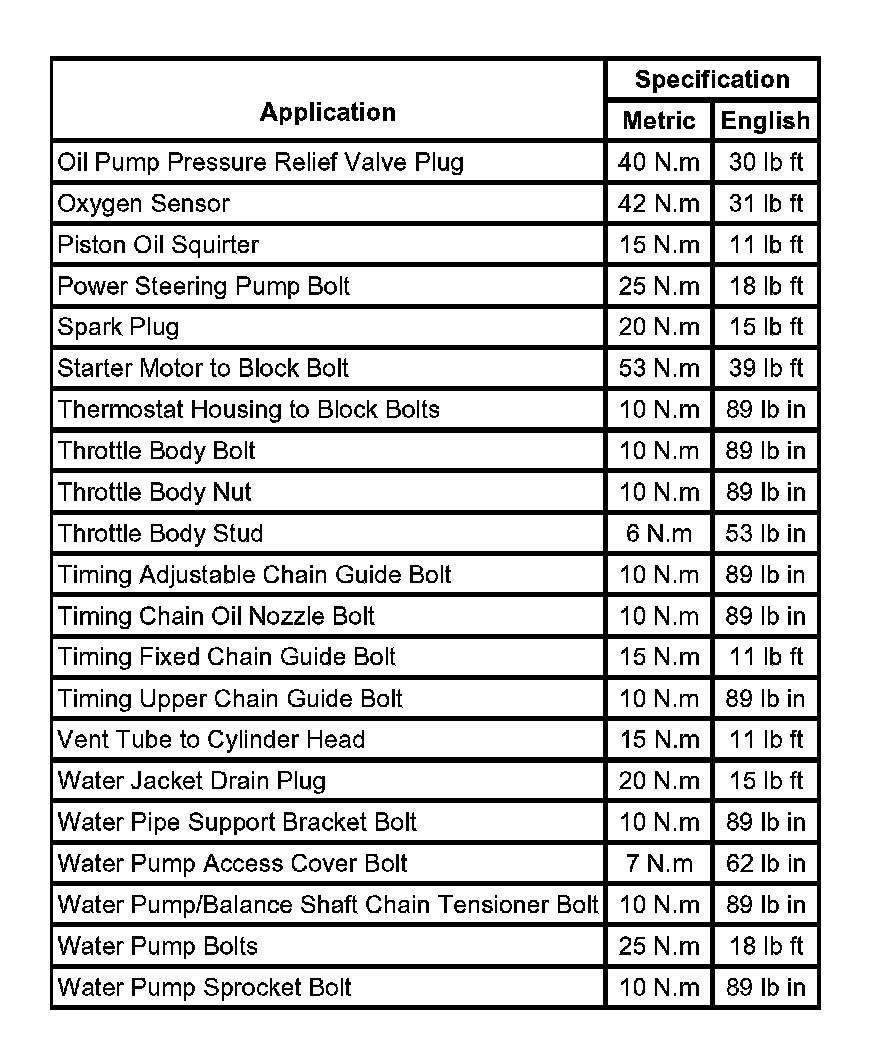 Fastener Tightening Specifications: