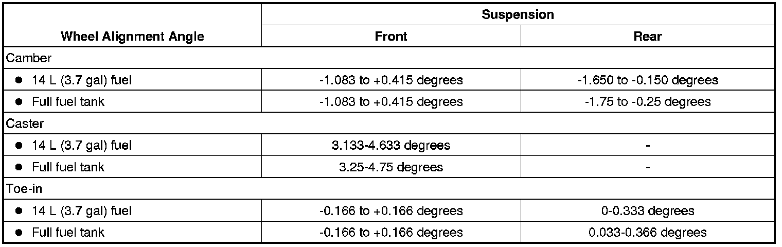 Wheel Alignment Specifications