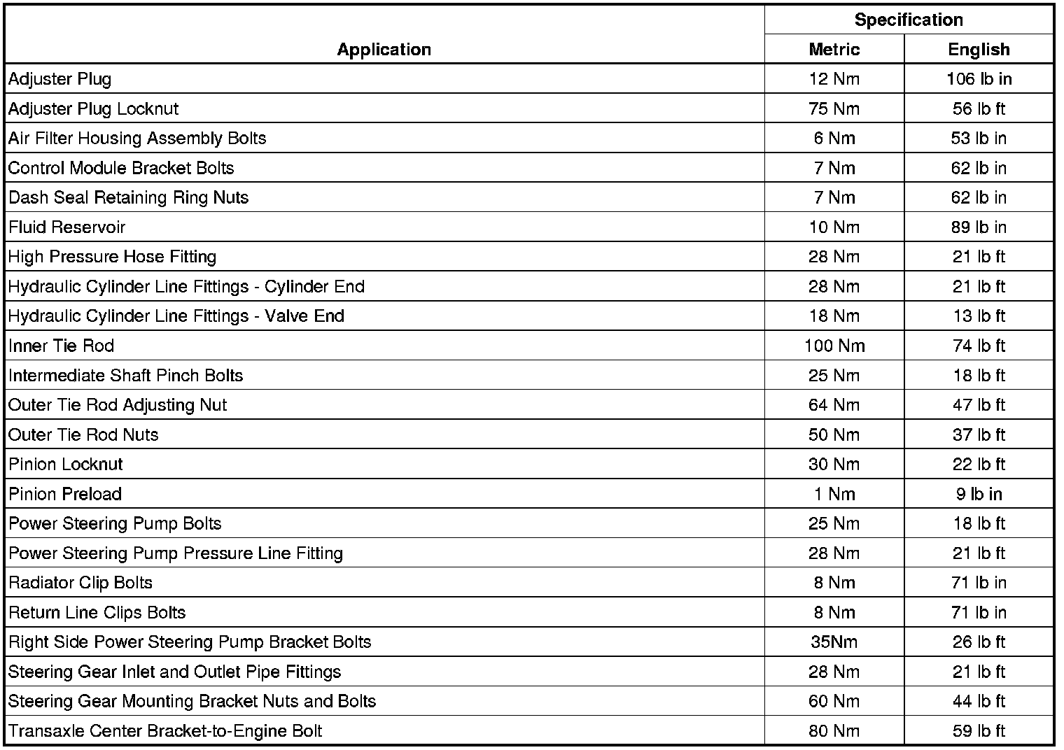 Fastener Tightening Specifications