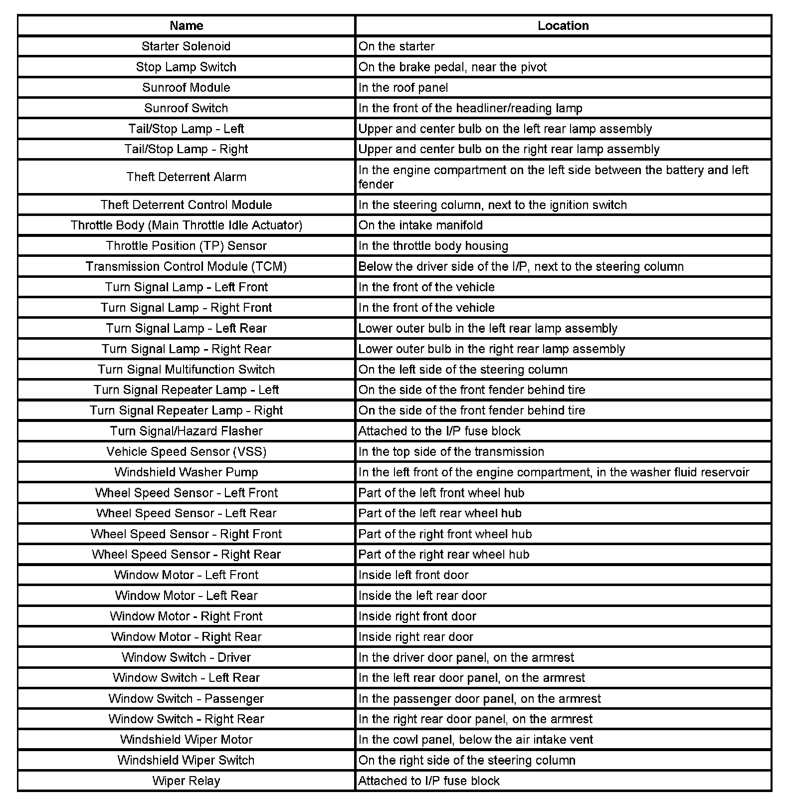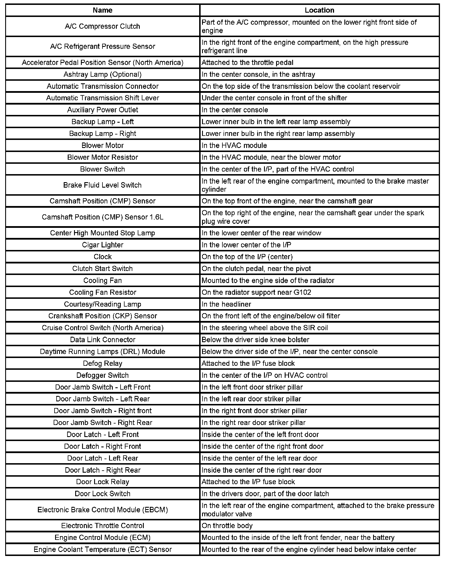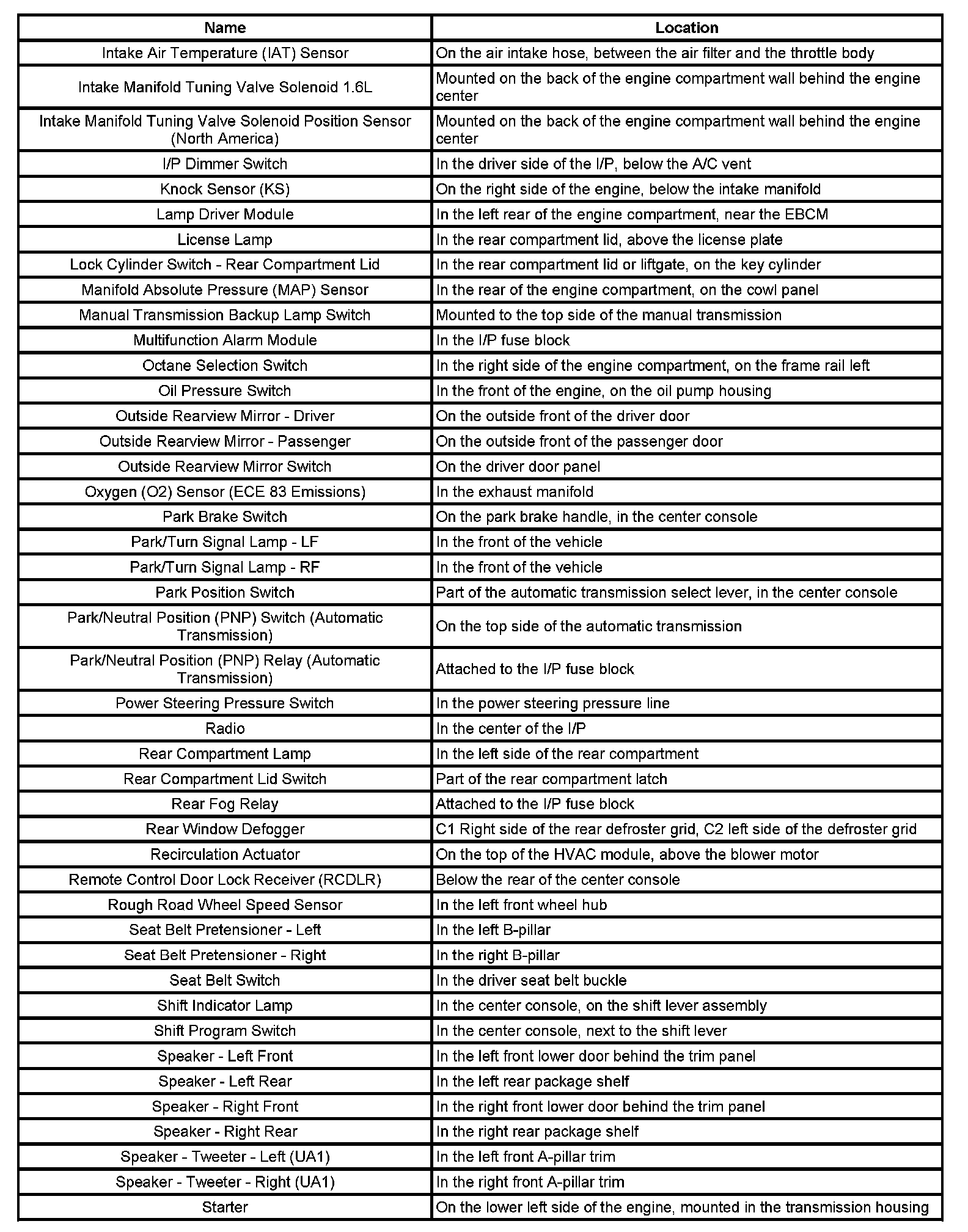 Master Electrical Component List (Notchback)