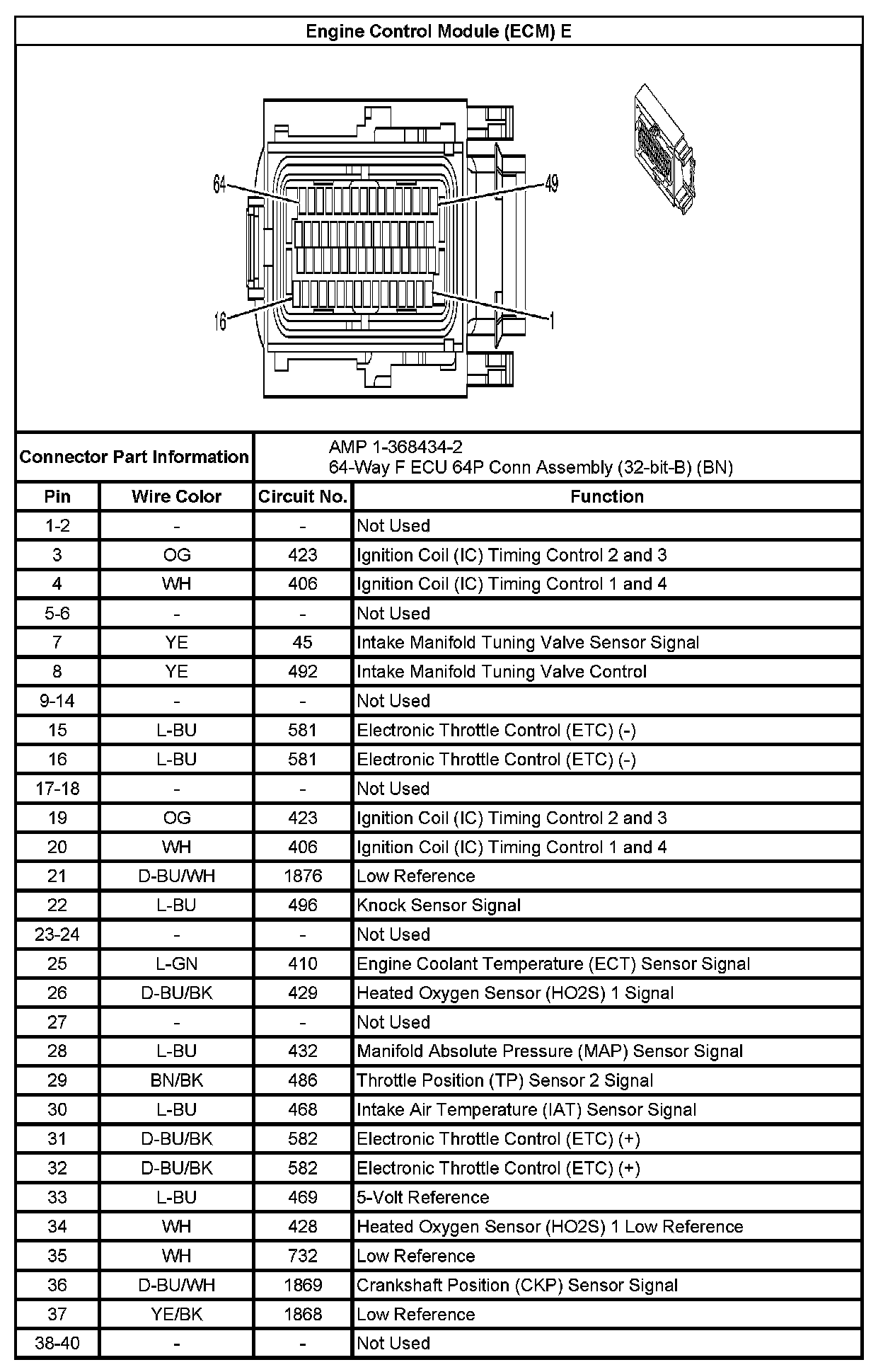 Engine Control Module (ECM) E (Pin 1 To 40):