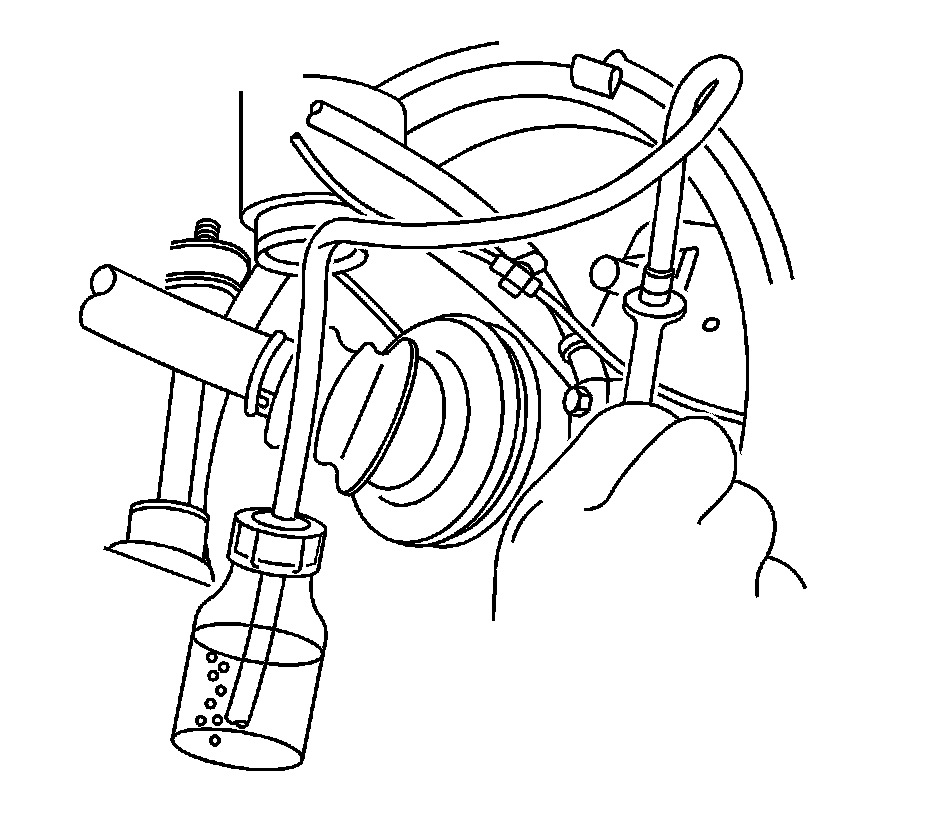 11. Attach a transparent tube over the valve. Allow the tube to hang submerged in brake fluid in a transparent container.