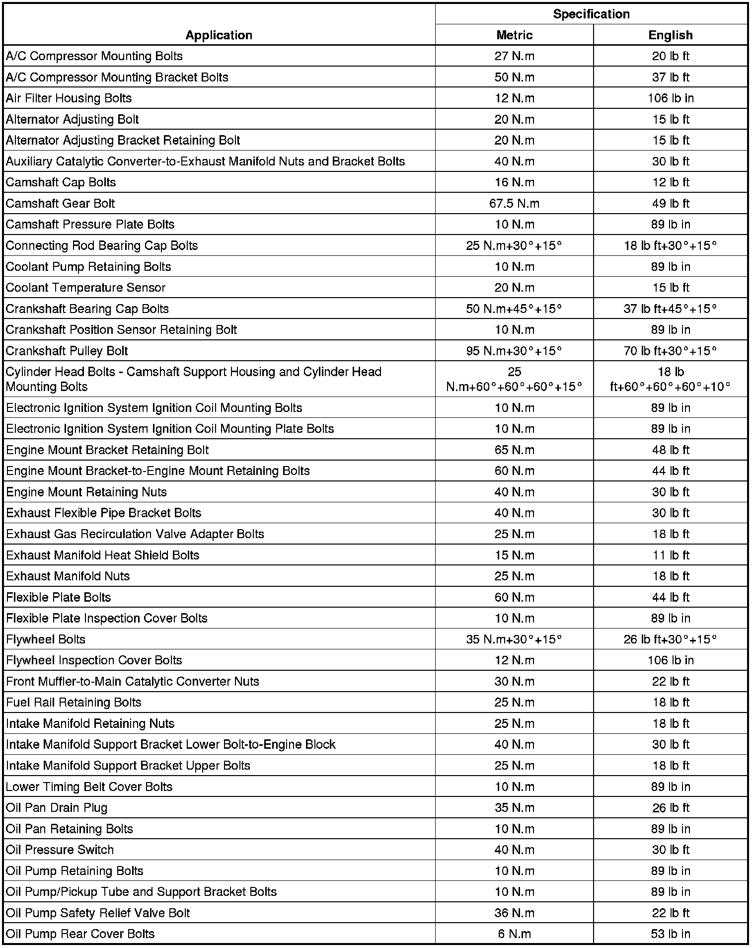 Fastener Tightening Specifications