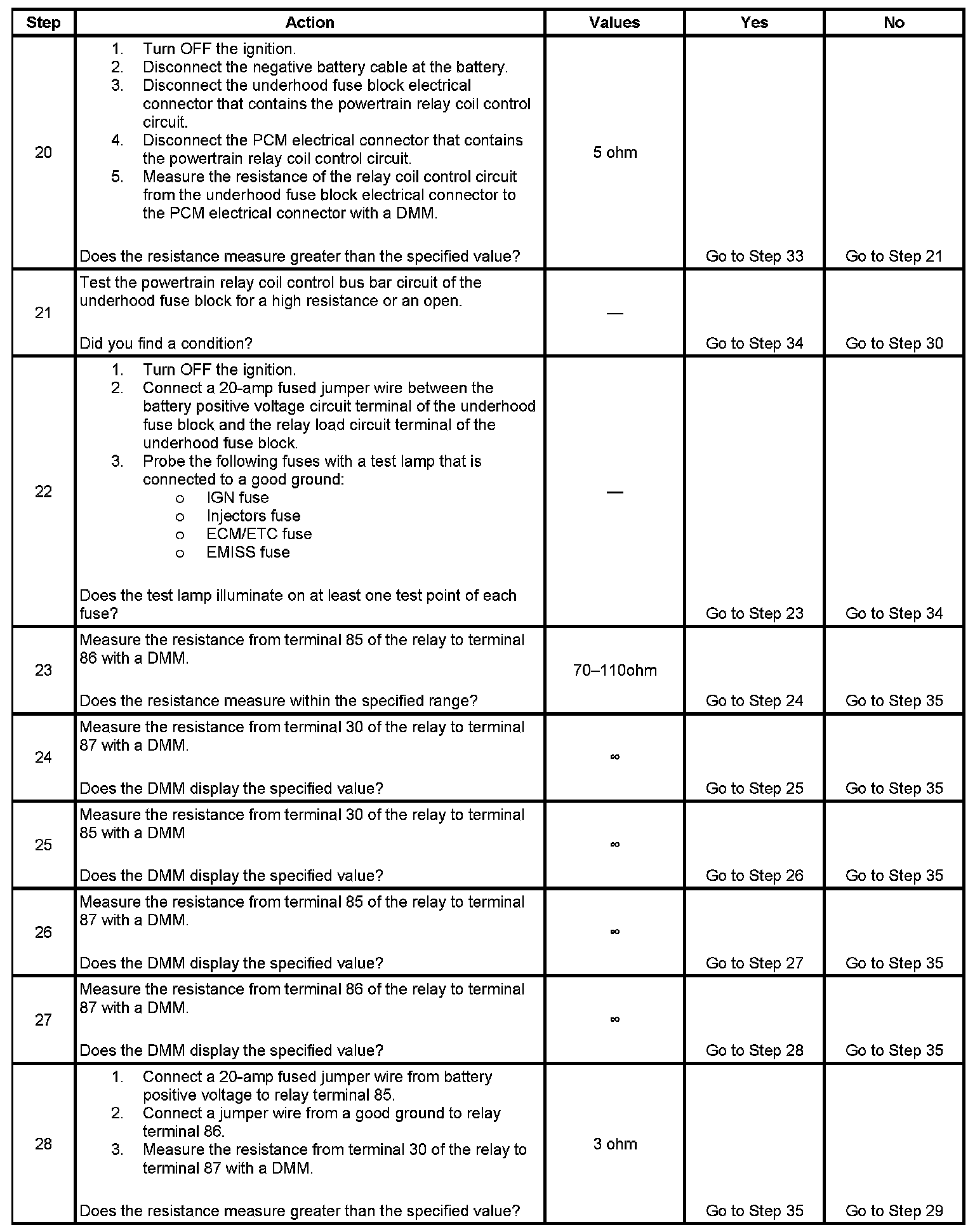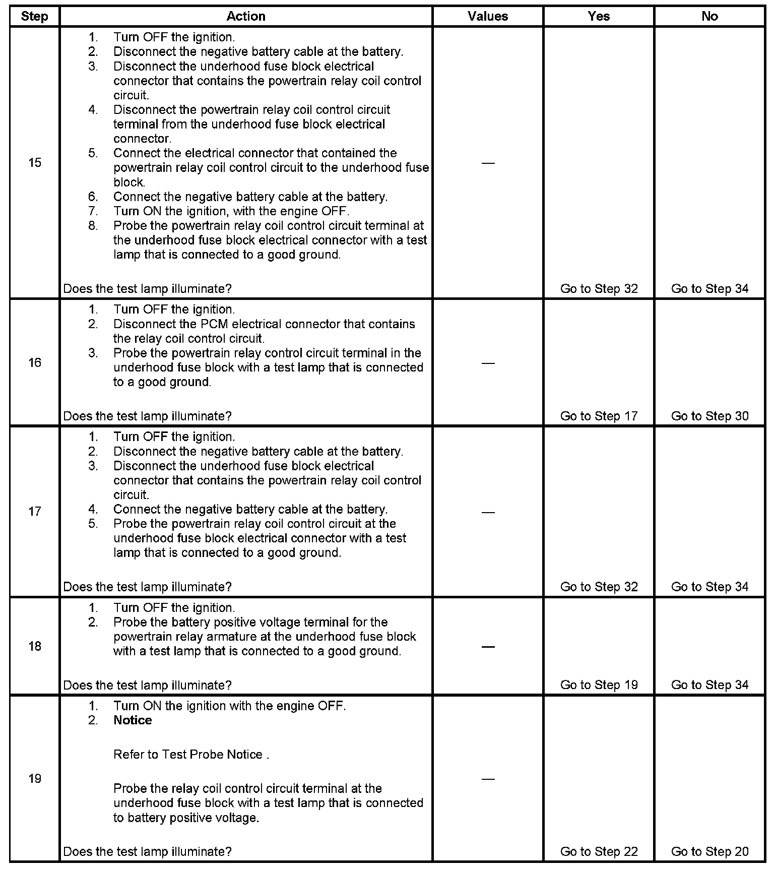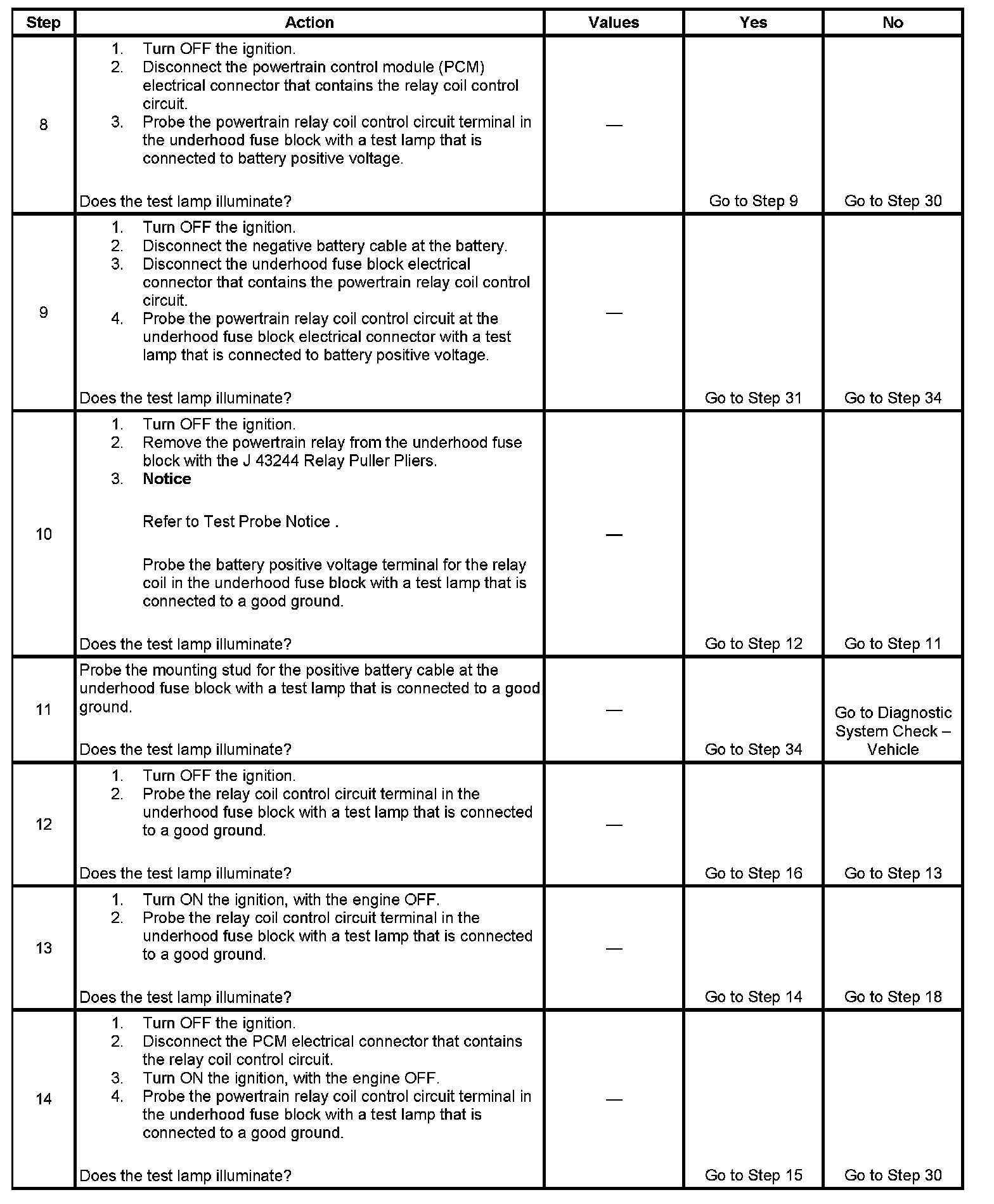 The powertrain relay system diagnosis table assumes that the vehicle battery is fully charged. Refer to Battery Inspection/Test. Battery Inspection/Test