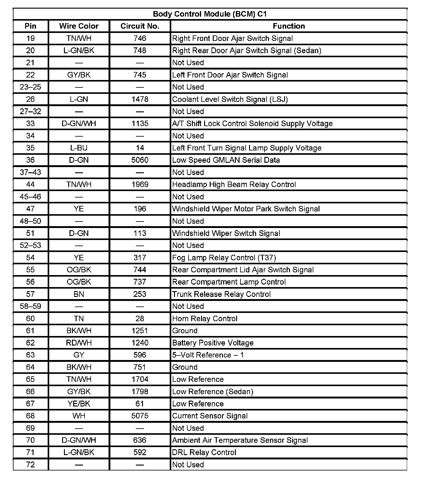 Body Control Module (BCM) C1 (Pin 19 To 72):