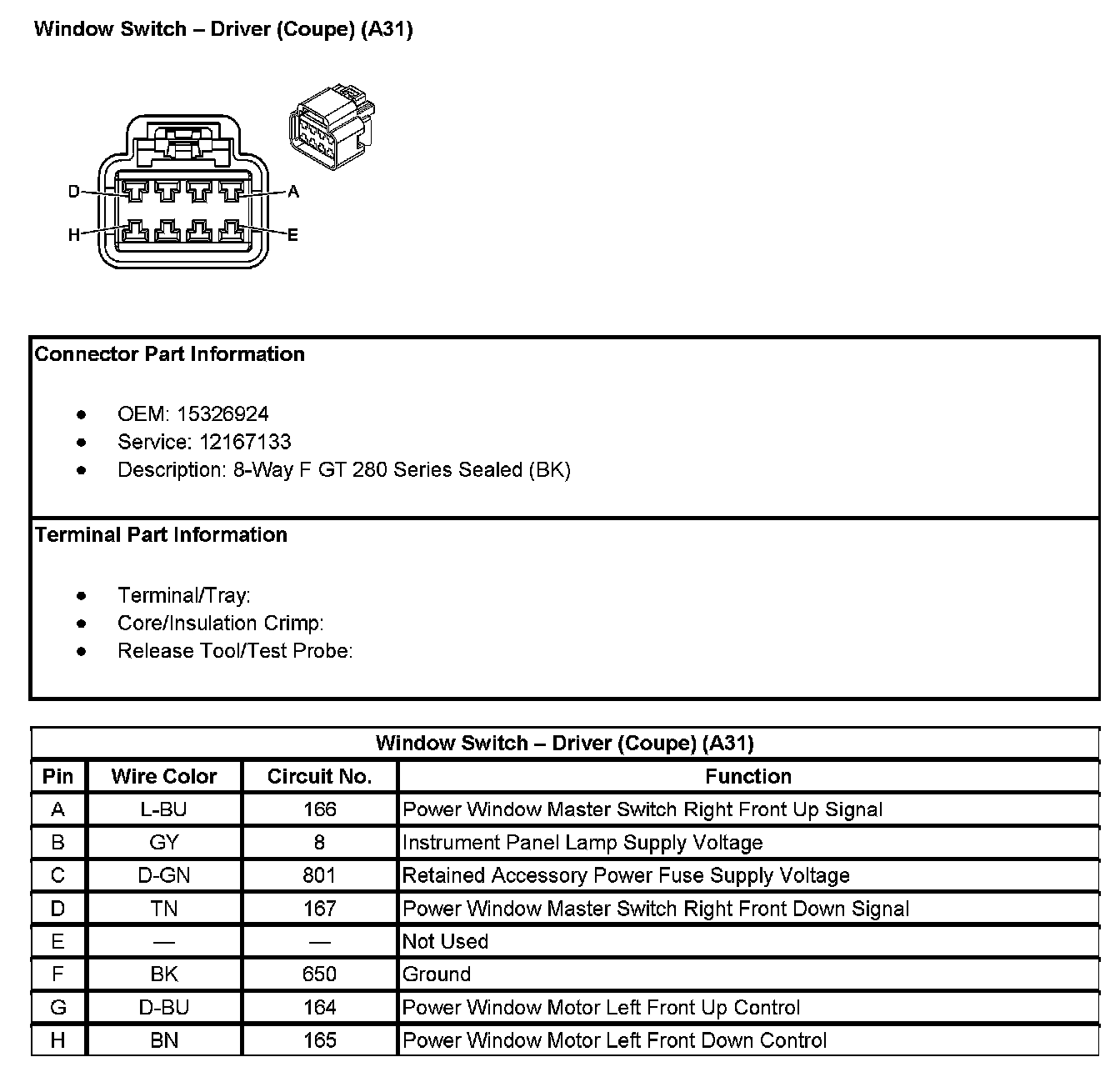 Window Switch - Driver (Coupe) (With RPO Code A31):