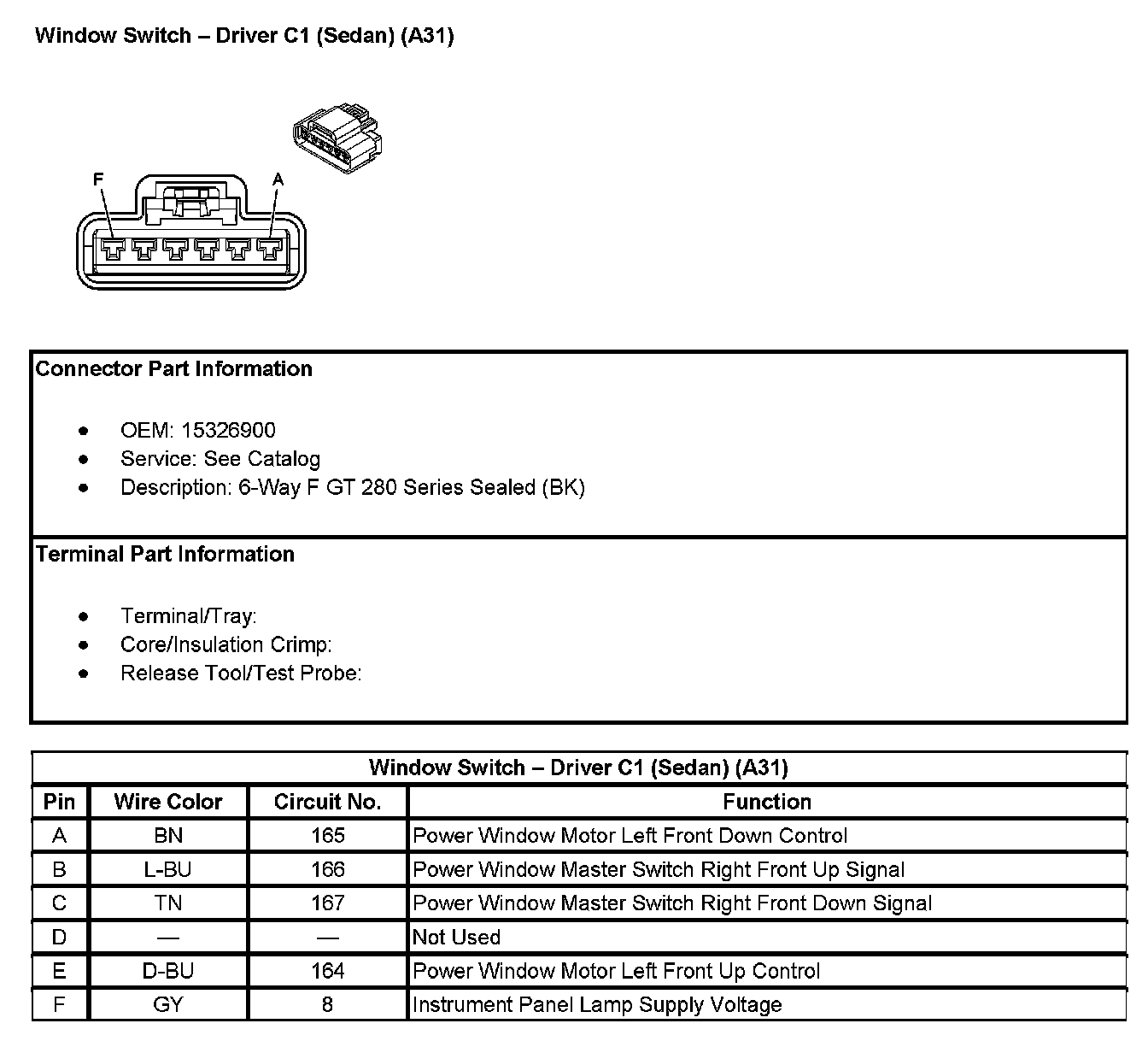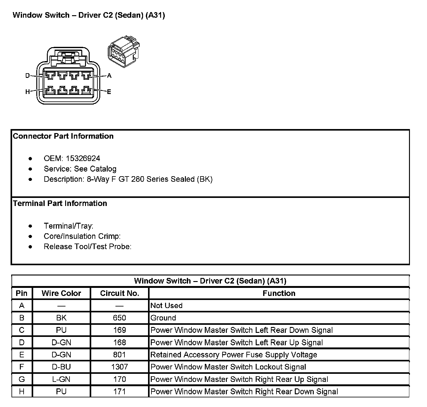 Window Switch - Driver C2 (Sedan) (With RPO Code A31):